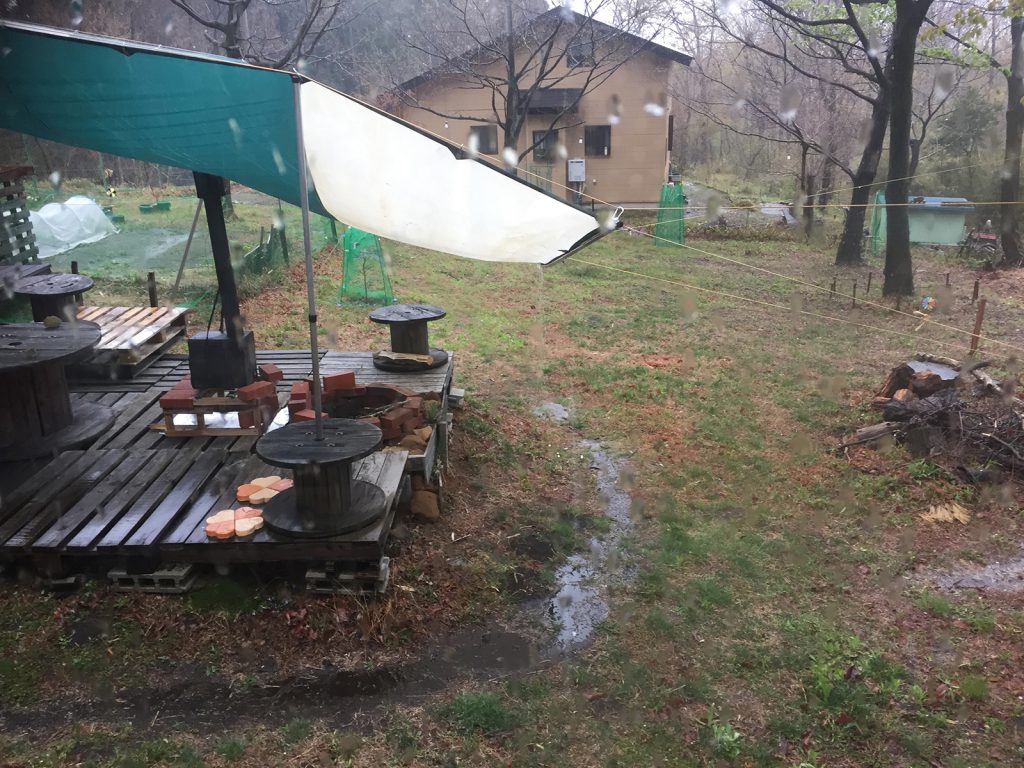pm2:00過ぎ、一瞬、雨が止む//チャンス((( 三( -_-)