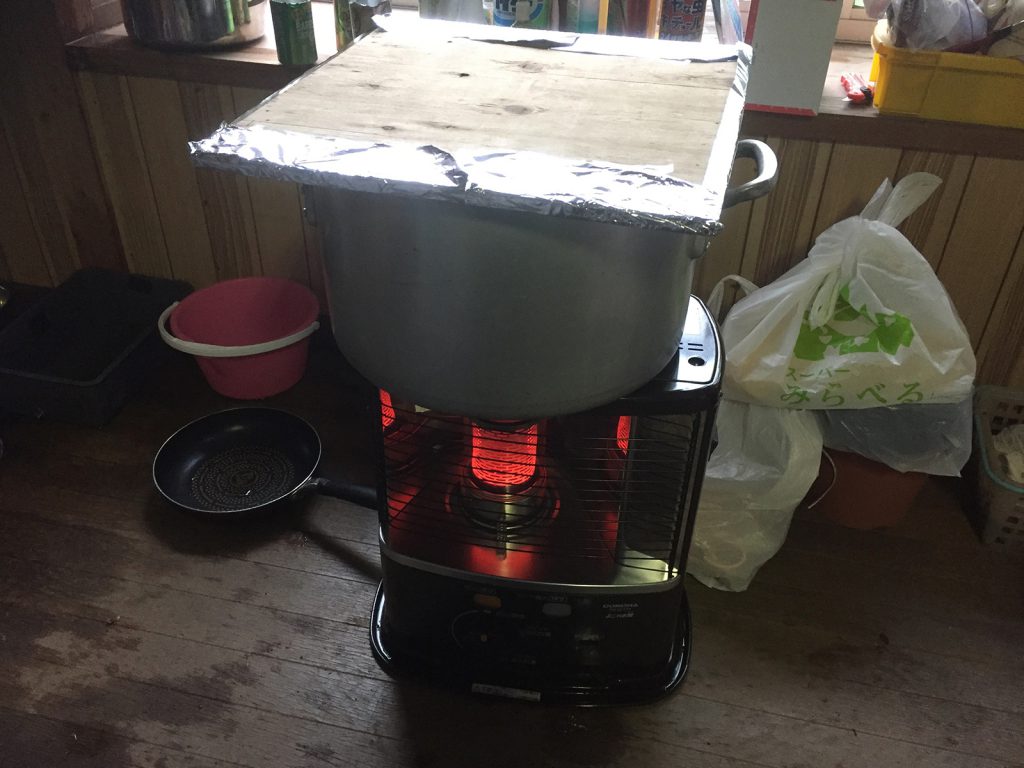 入り口に放置してた寸胴鍋に、お湯沸かしまぁ〜す//。