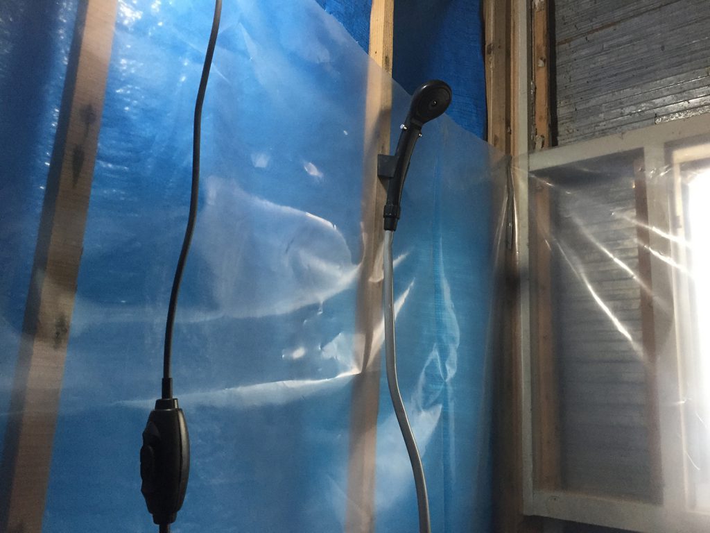 簡易シャワールームにします∠( ̄◇ ̄)