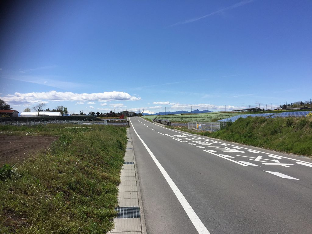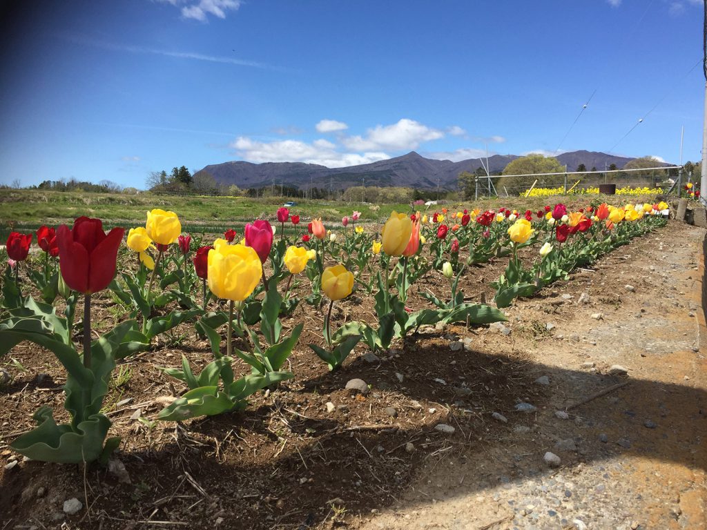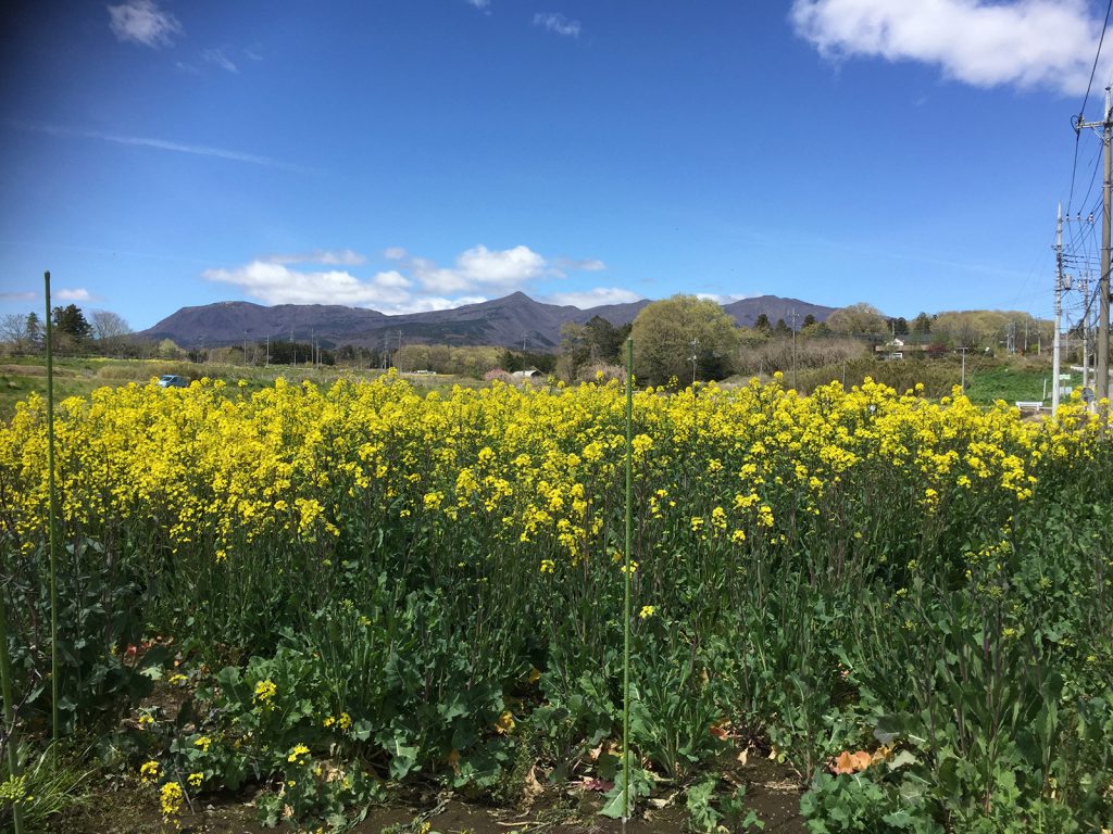 降りてくる途中、赤城山と菜の花畑の風景__