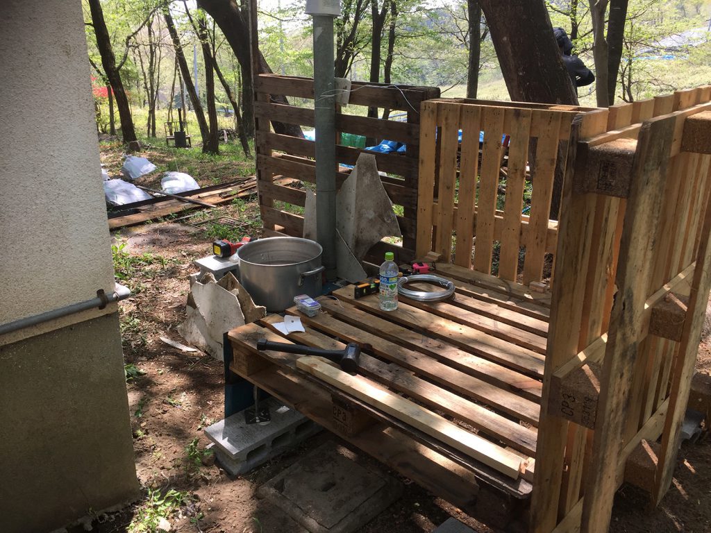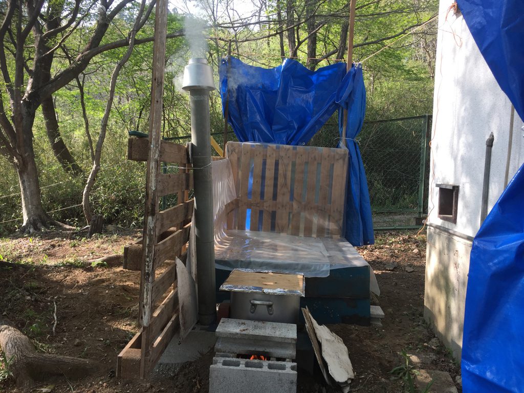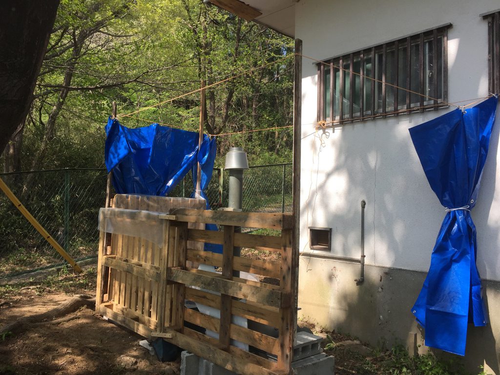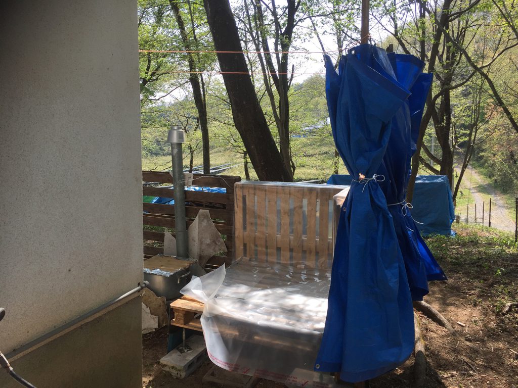 仕上げはブルーシートでカーテン代わりにして、完成です//。
