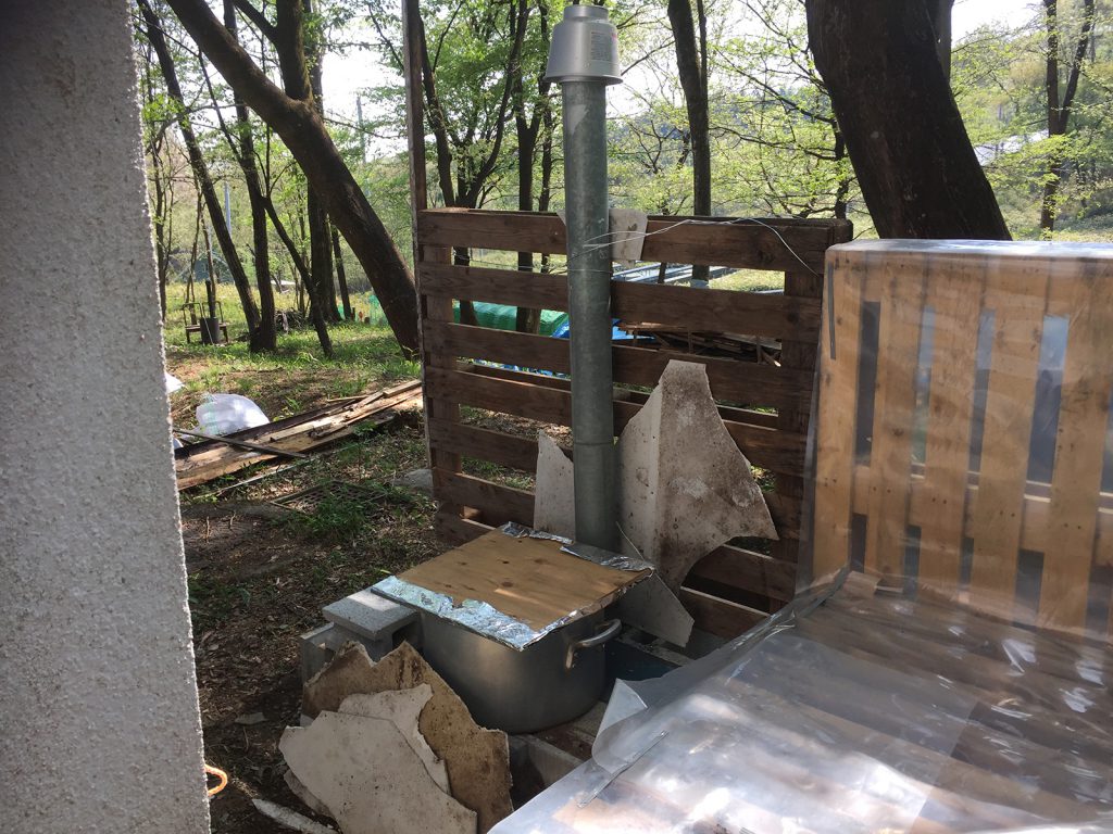 朝から夏のような日差しで、、、数日前に、ドラム缶が手に入るから!との連絡、、