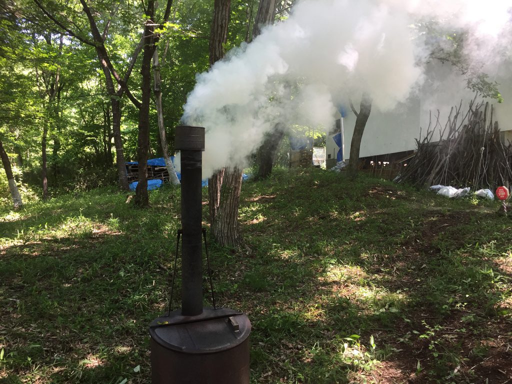 償却が終わった後には、お湯沸かし___朝から煙まみれ><意外と汗、ヤバイ,,,(ー。ー)