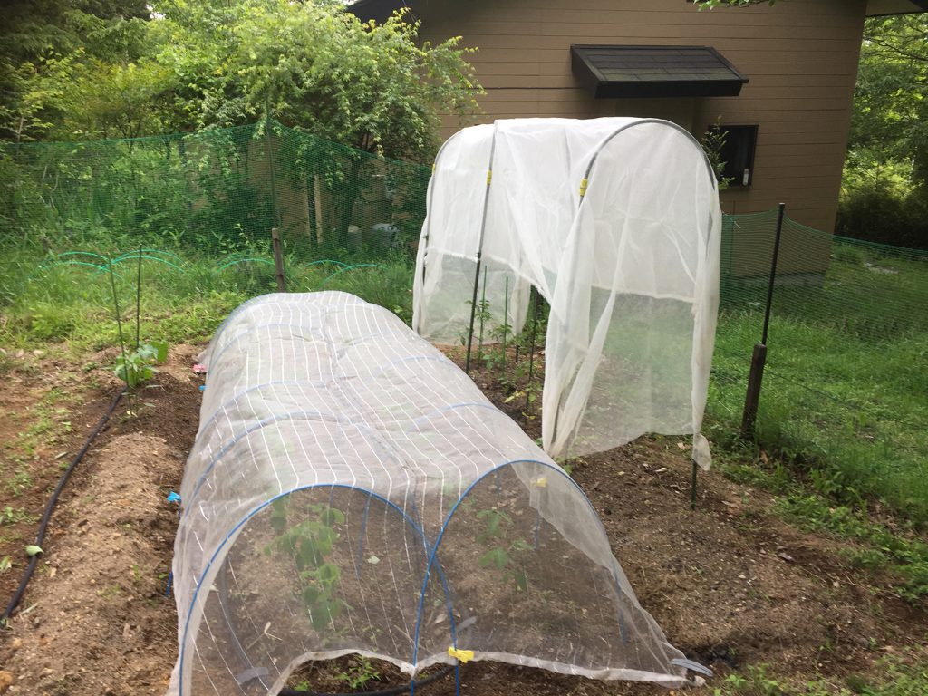あ〜んど、梅雨前に、枝豆とトマトを囲っておきました//。