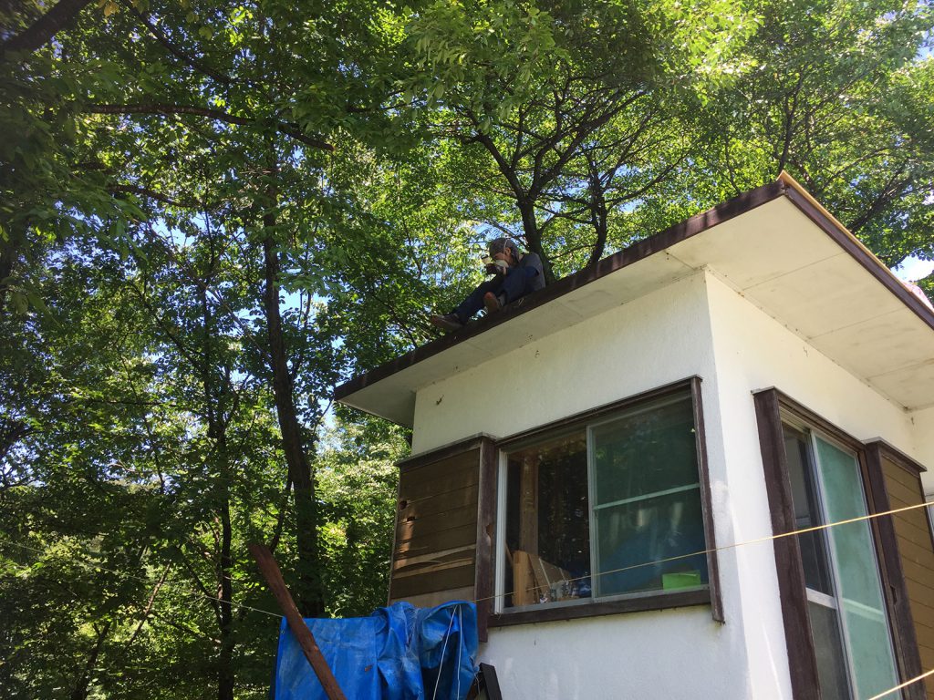 屋根作業には…とか言ってられないp|  ̄∀ ̄ |q 朝から登ってます//