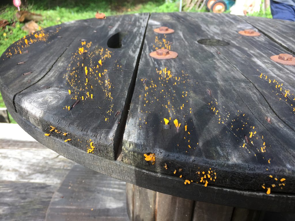 テーブルに生えたきのこ,,,取り除いて、除菌。。