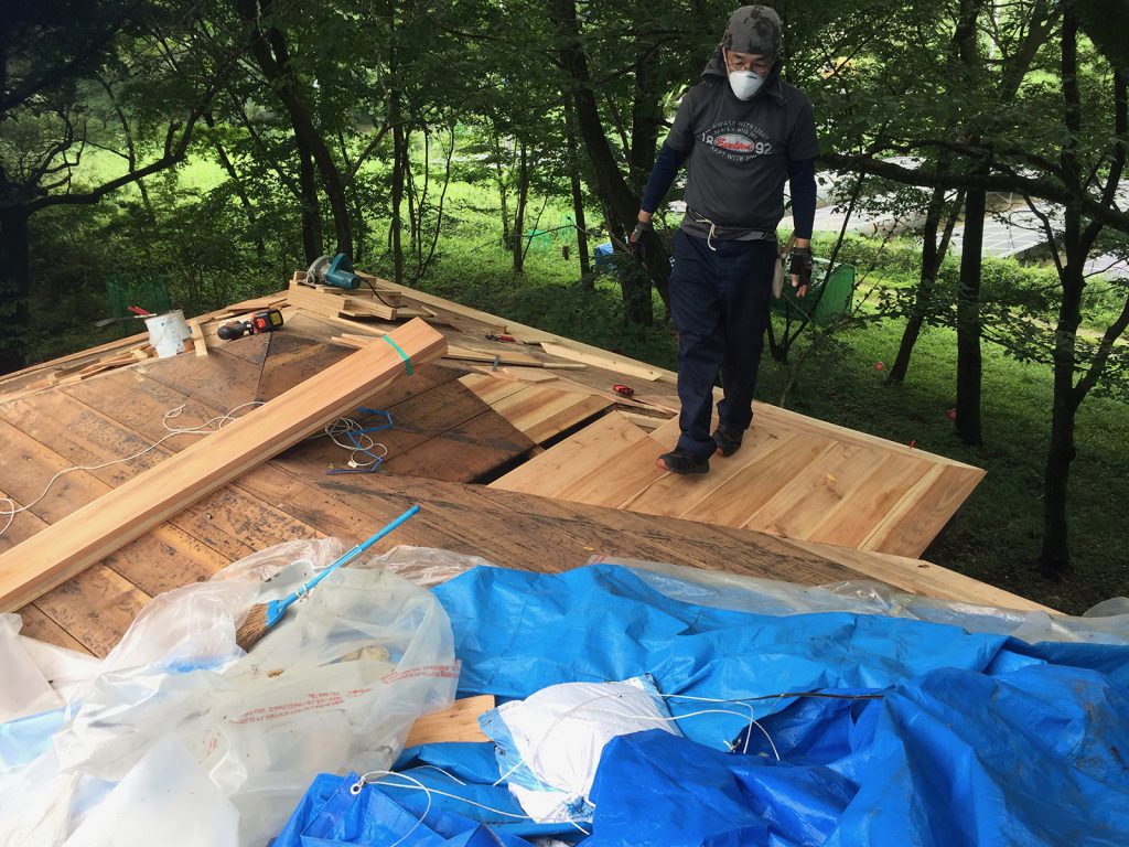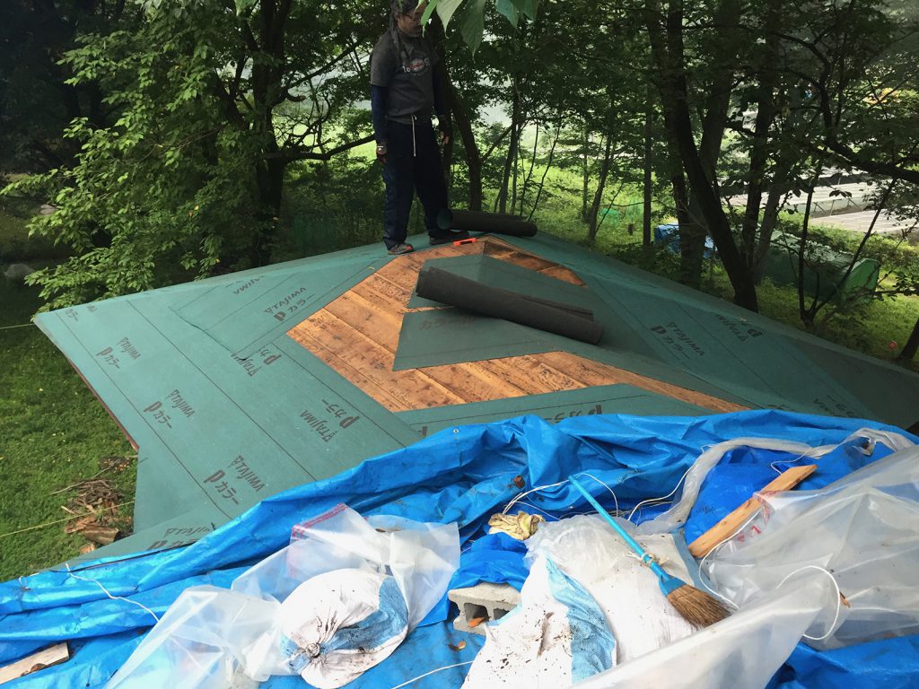 シートを剥がし中、板がないところに足を落とす( ̄ロ ̄|||)ハプニングあり,,