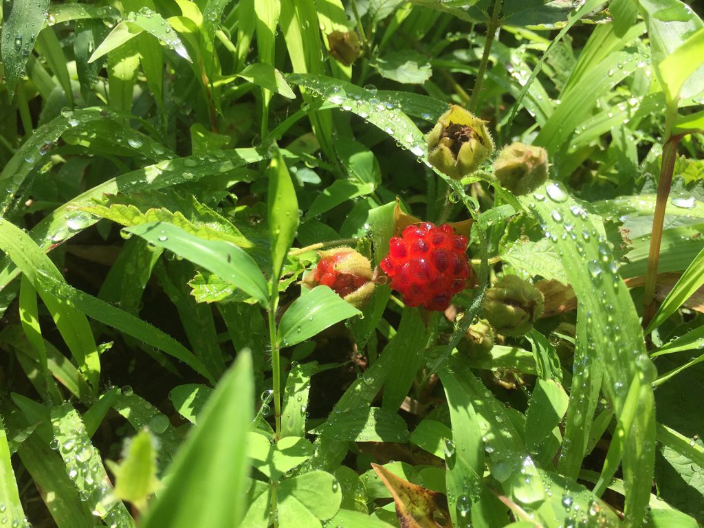 畑の様子は____、ナワシロイチゴって言うみたい。食べれるようだけど、勇気なく..