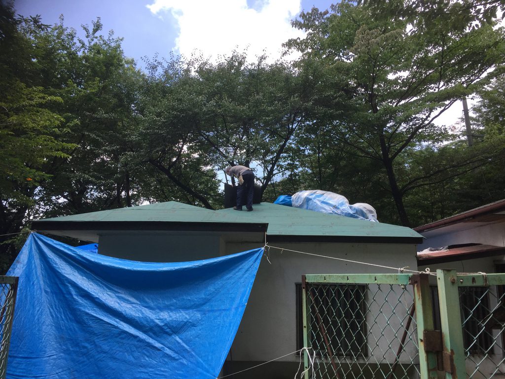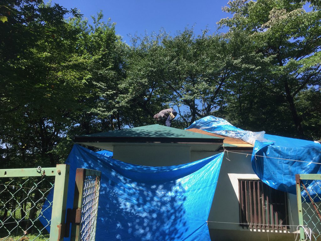 katsuは、バチバチとシートを打ち付けて、結構進んでますぅ〜〜、暑さとの戦いもだけど、」
