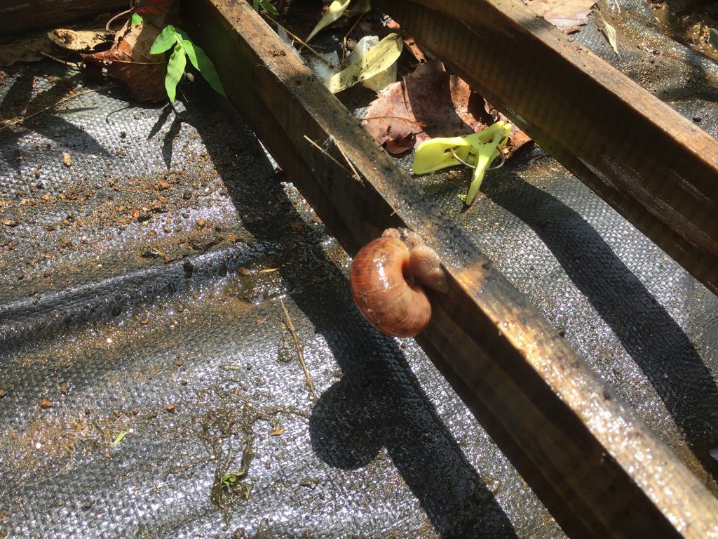 そして、簡易ビニールハウスを撤去してたら、こんなデカイ、カタツムリが(>_< )