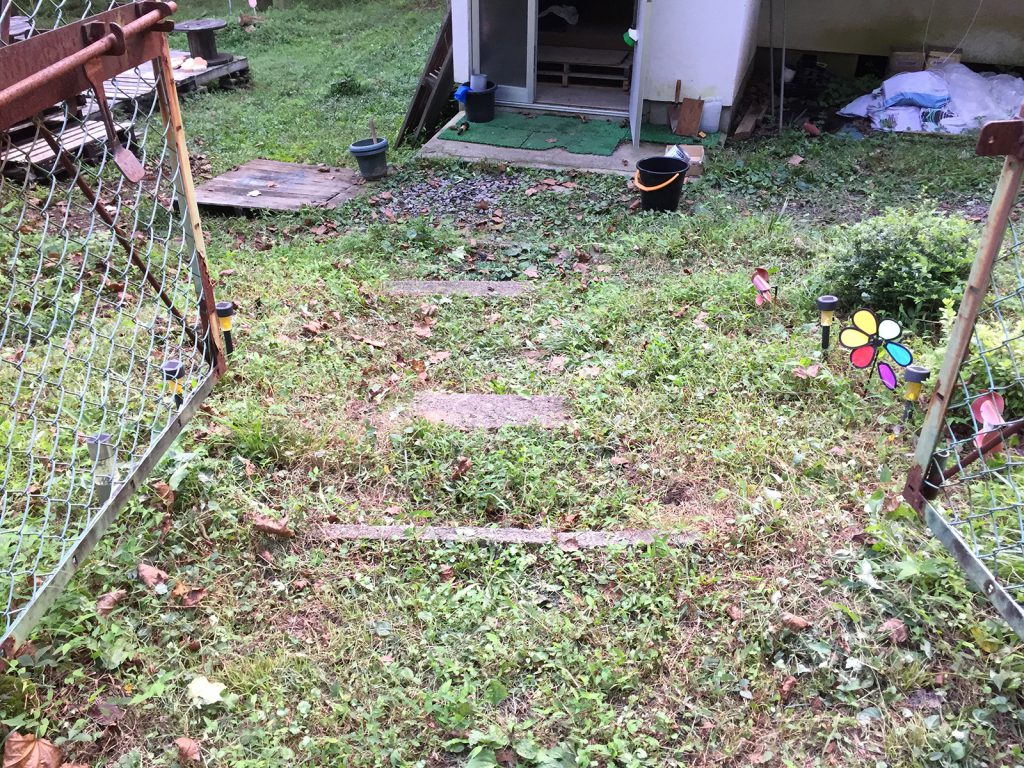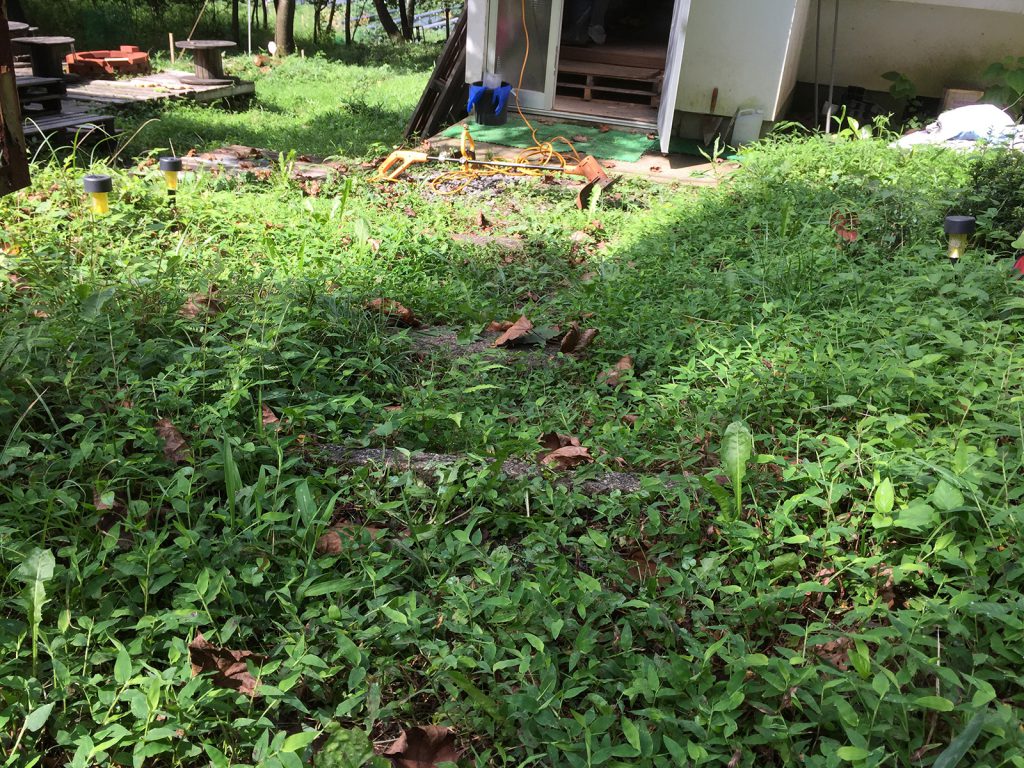 とりあえず、入口の段差がわからないほど、伸びた草刈りから//