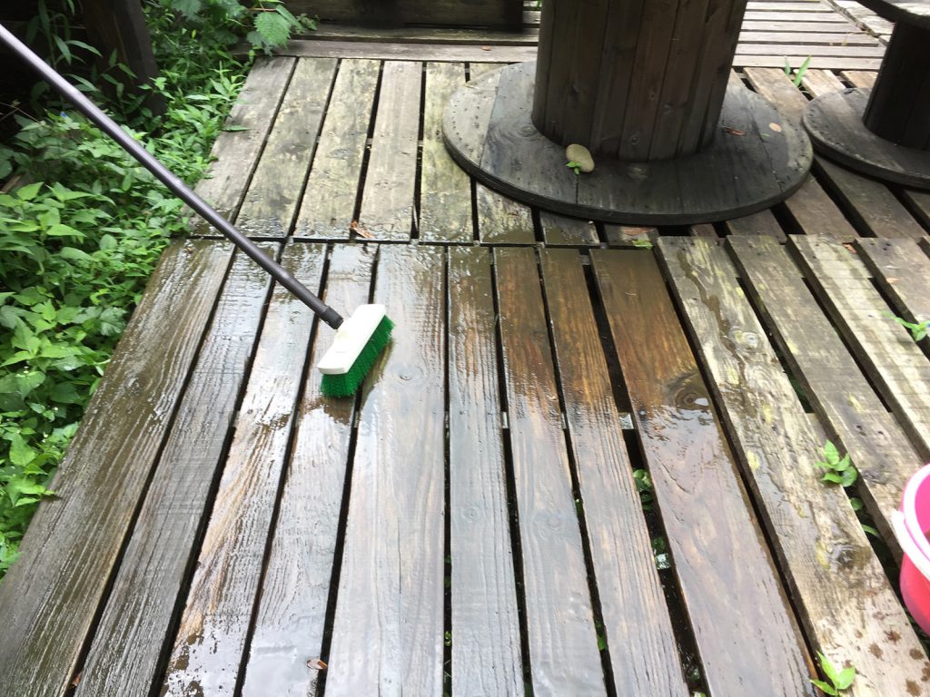 そんでもって、コケに覆われたデッキの洗浄、、昨夜、スケートリンクのように滑ったのだ,,,(≧ヘ≦)