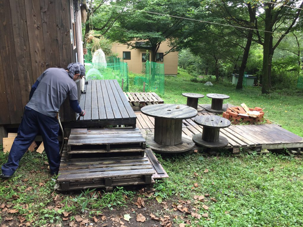 雨の予報もなさそうなので、最後はデッキの塗り替え_。_。
