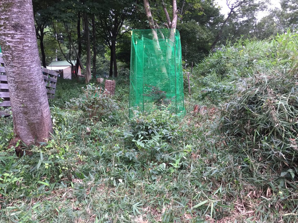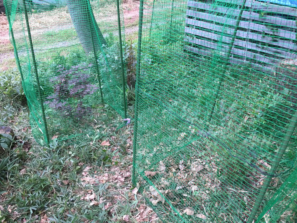 ここの2種のモミジ周りをスッキリさせて、ネットも囲い直した//。