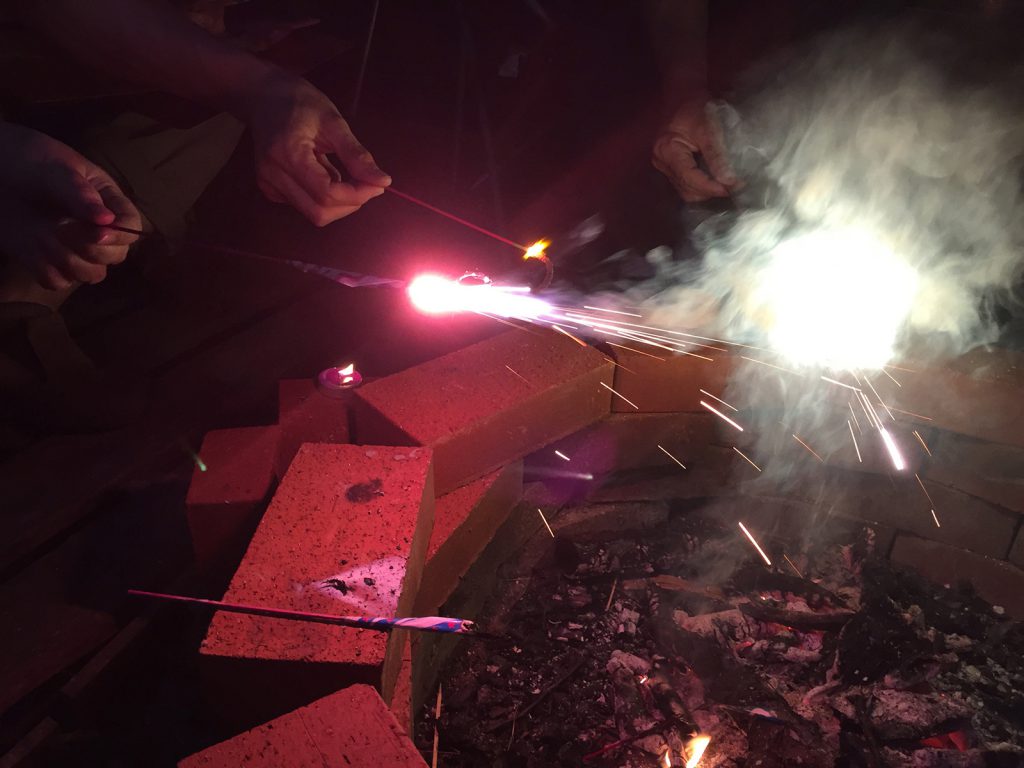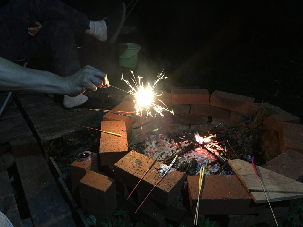 夕飯済んだところで、Oさんたちを呼んで、花火だぁ〜 d(⌒o⌒)b