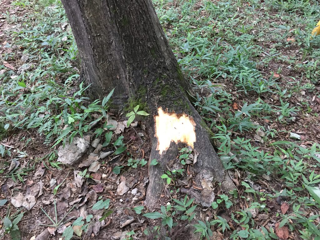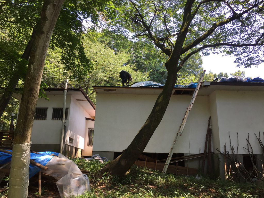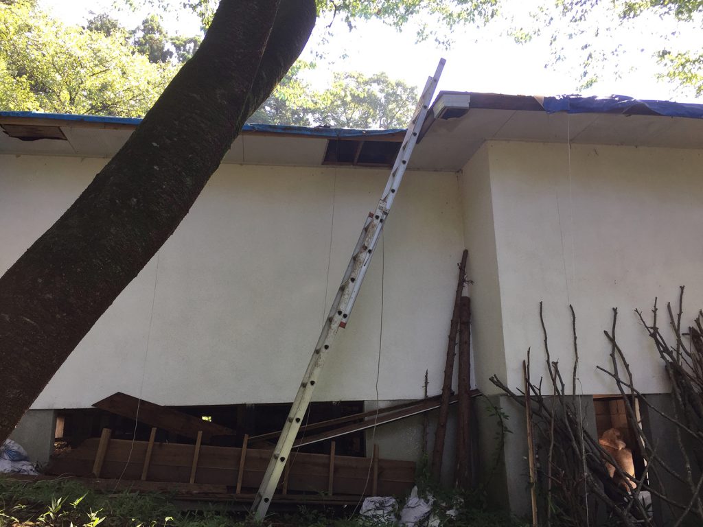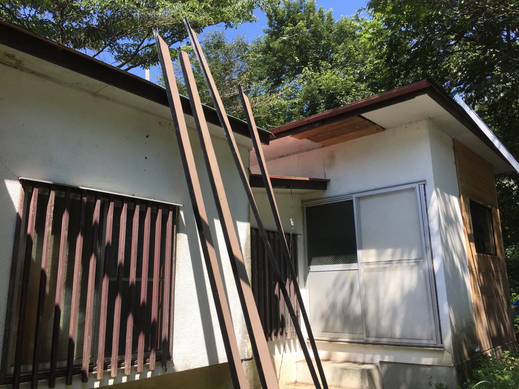 朝一で、ハシゴを借りてきて、日陰のところから__、