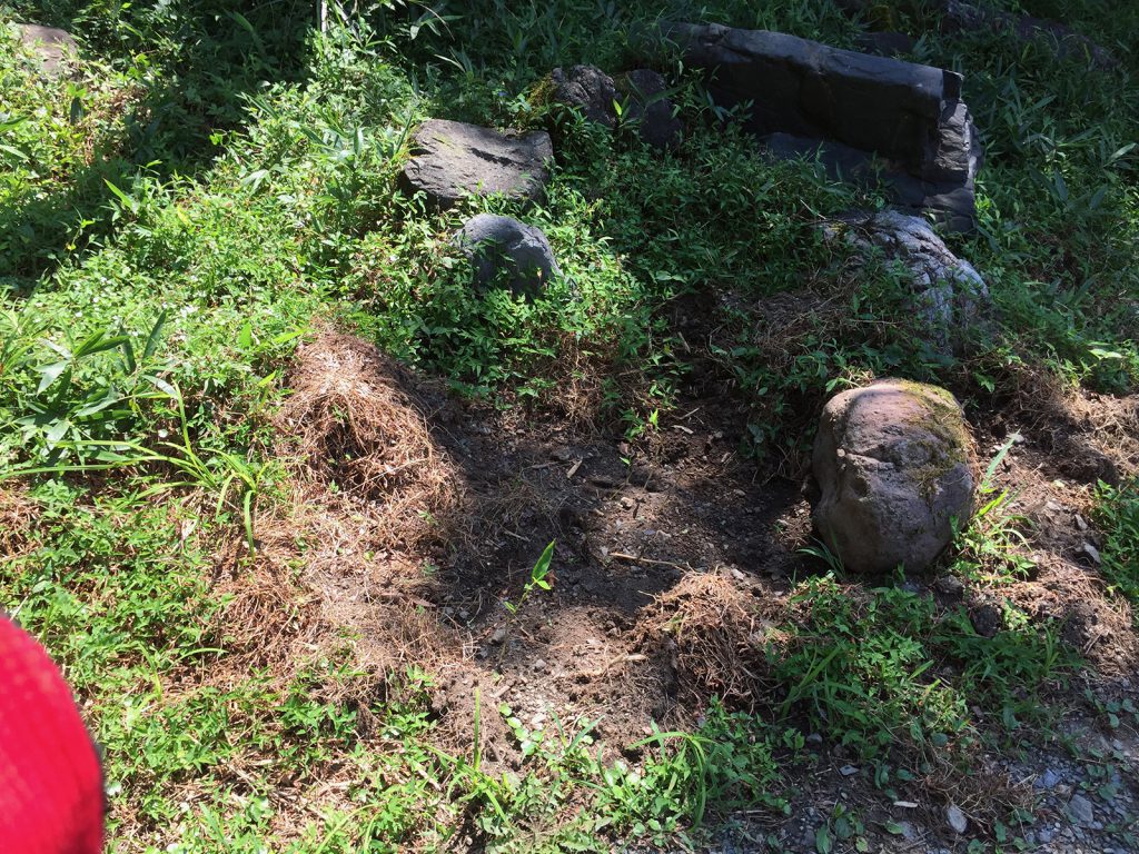 uriは、木陰での作業中、、、あれっ?ここのデカイ平らな石が、無くなってる??