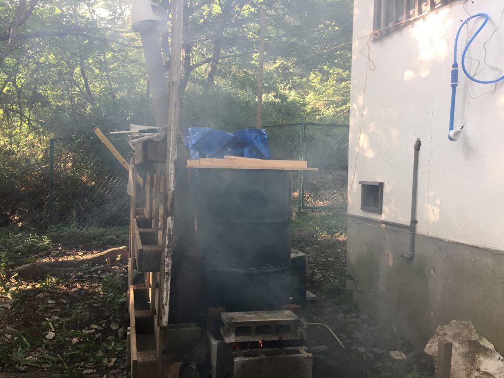 で____、試し焚きってことで、今日はドラム缶の湯沸かしから、、、失敗したら温泉へGo,,,