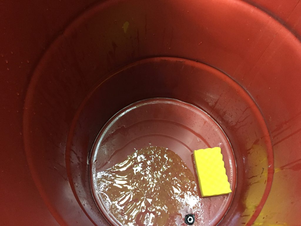 昨日、たっぷり使ったお湯の片付け//。固定してるので、上からスポンジで吸い取る、。