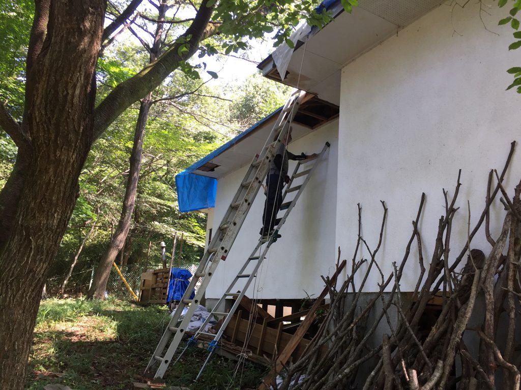 今日は、この軒天の修理//。ᕦ(ò_óˇ)ᕤ“