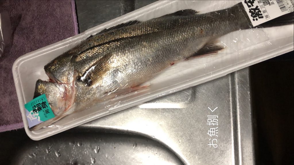 近くのスーパーでこの大物(スズキ)を買って、トライしたみたい・・