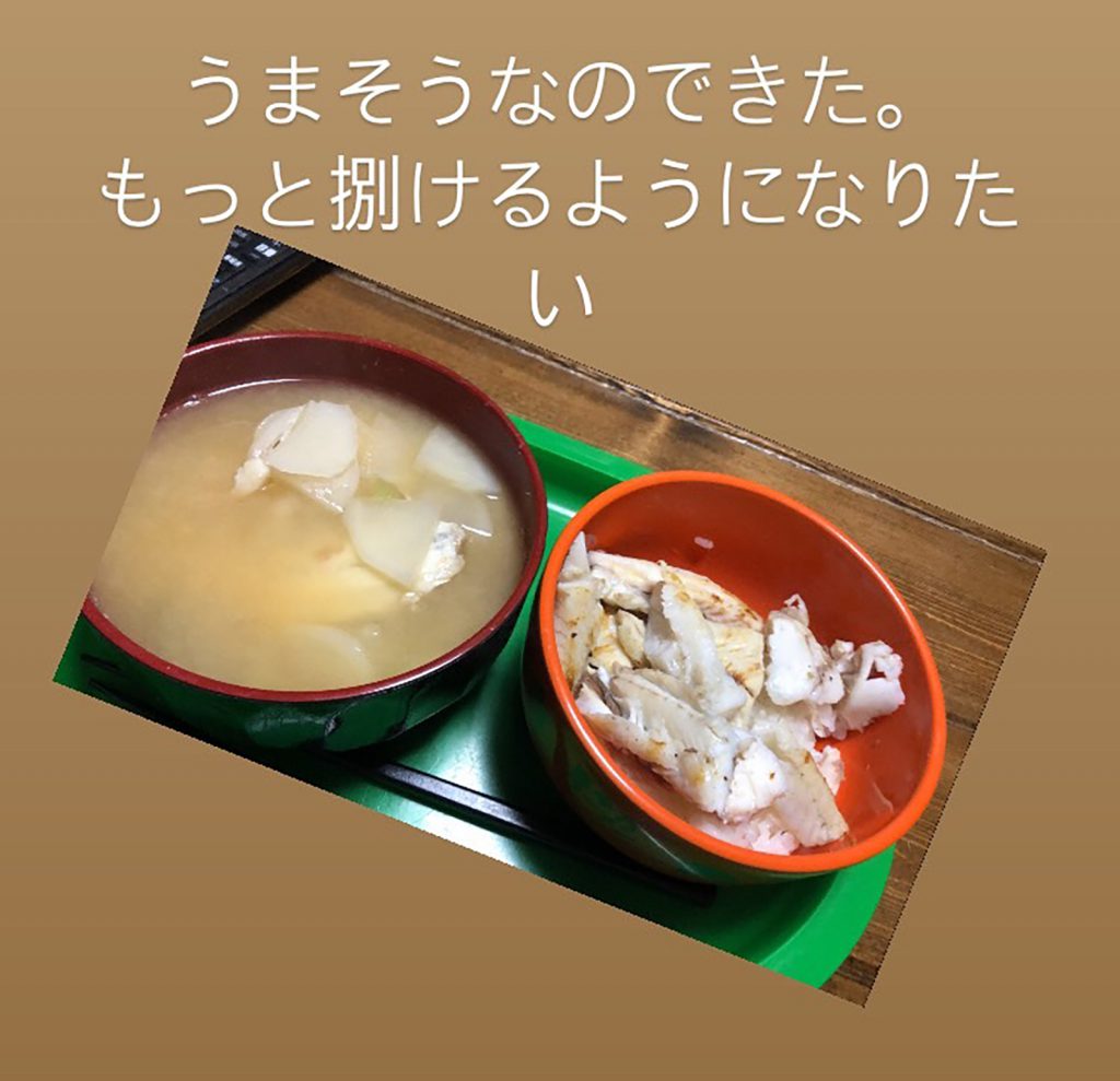 おっ!出来たんだ( ^-^)/ 骨の部分は軽く焼いて、あら汁に。