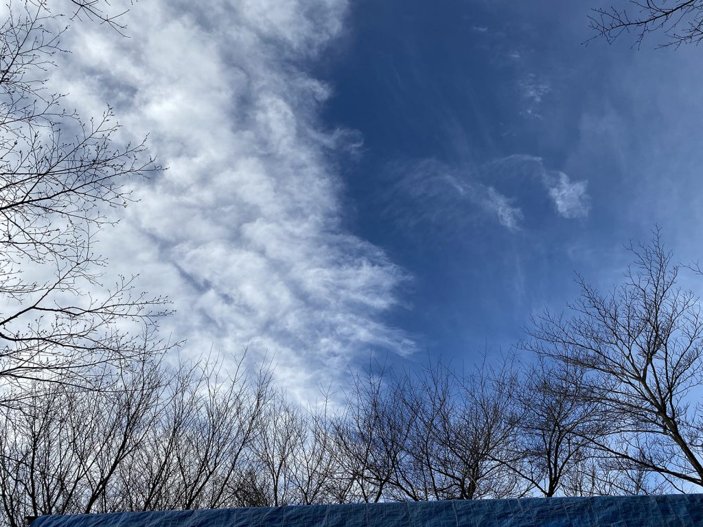 翌日も朝から快晴//、なのに、風の中に白いものが、、