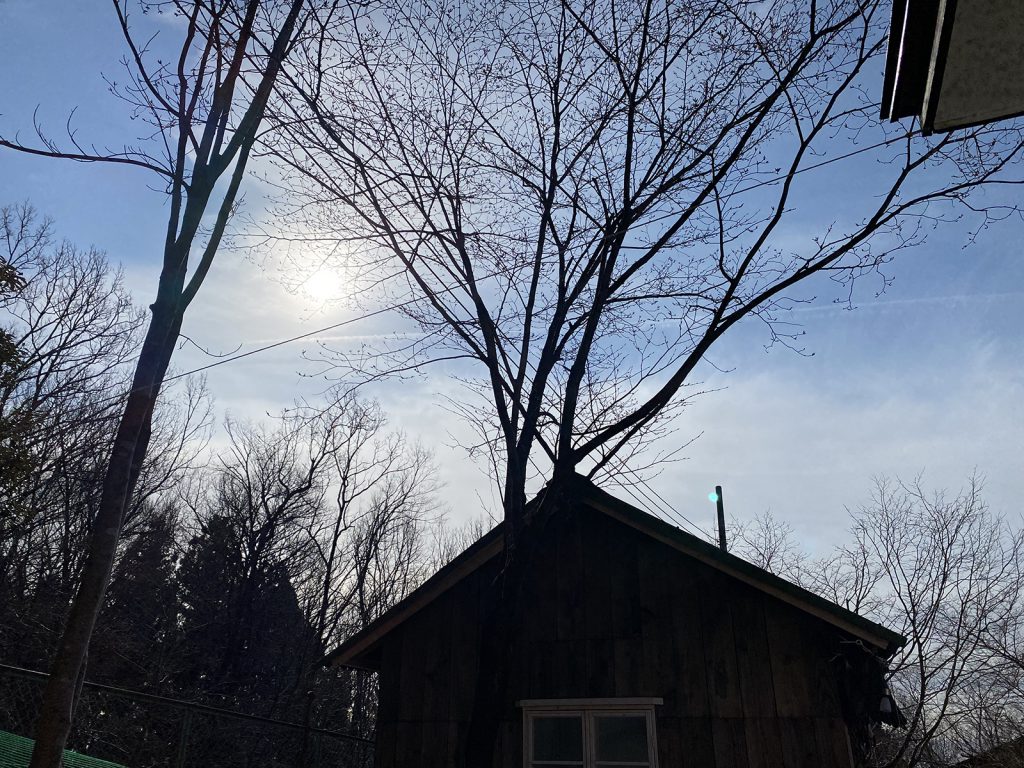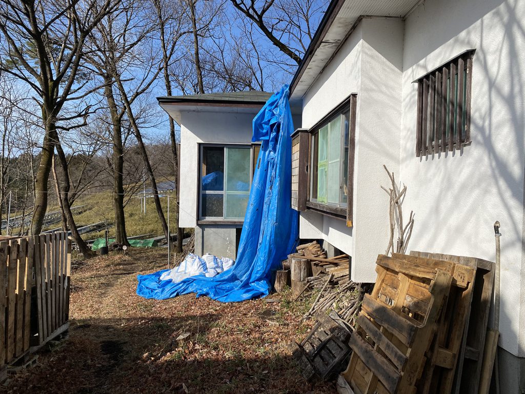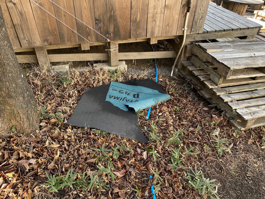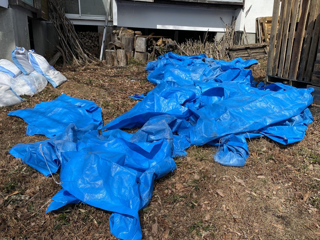 うわぁーっ、先日の強風で、、、雨避け用のシート、飛ばれたかぁ、、ヽ(×_×)ノ