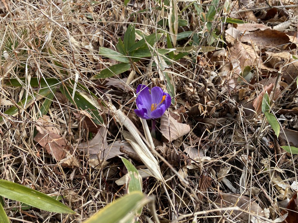 1個ずつ咲くクロッカス__、今回は紫かぁ、頑張ってるね(*^o^*)