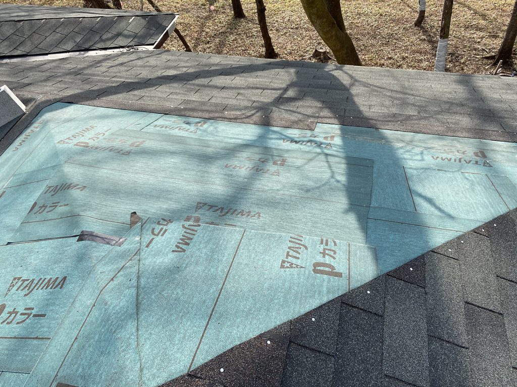 破れた防水シートの箇所を、貼り直して、始めてますぅ//。