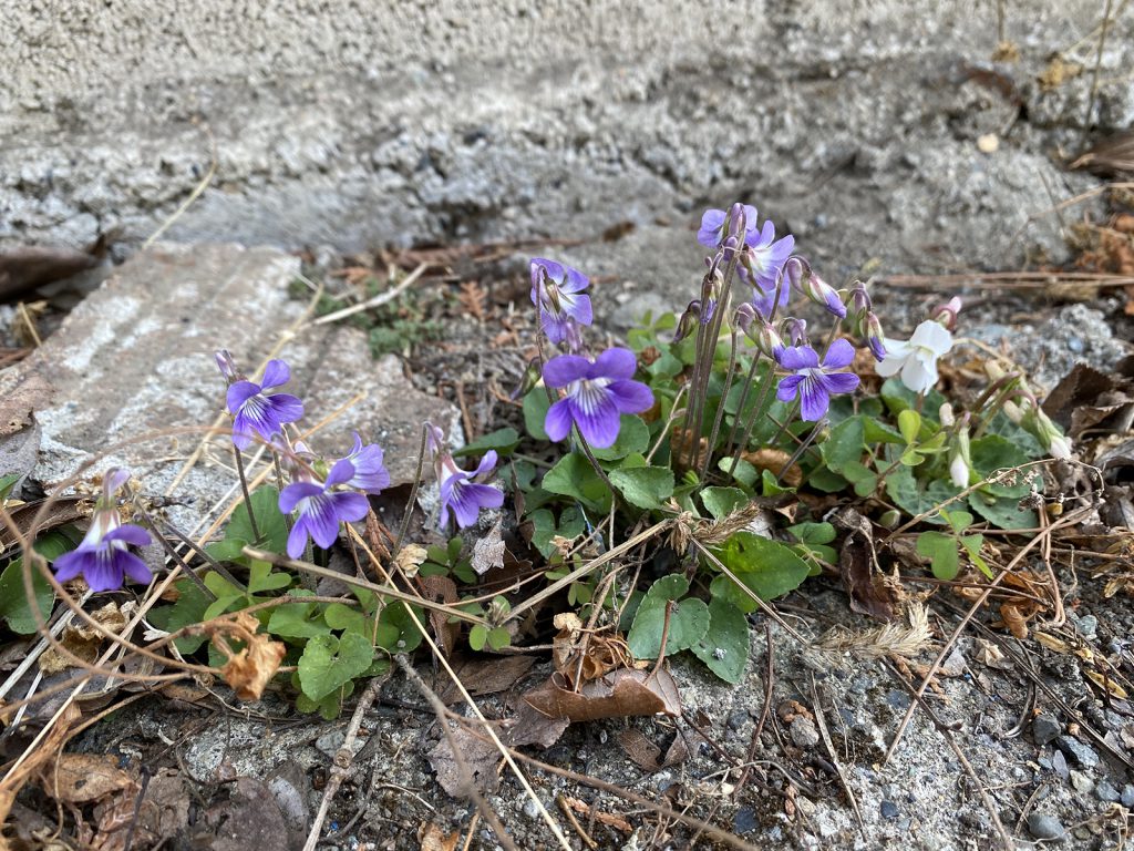 下界より遅いスミレ、開花し始めてるぅ〜〜