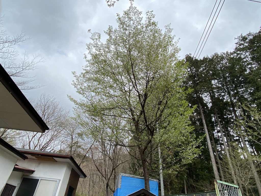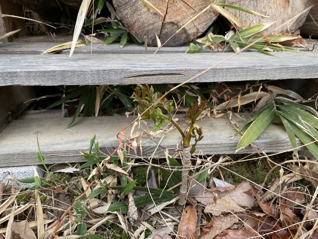 はぁ~い、こんにちは!って感じで、薪台の下から、たらの芽が出てた^▽^