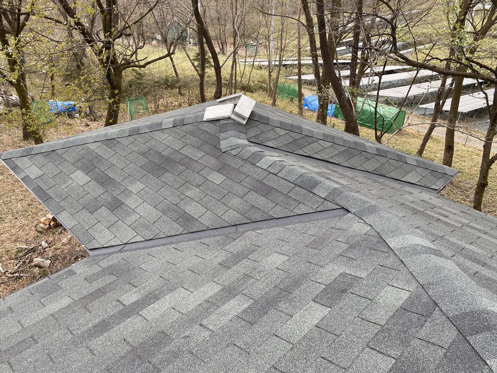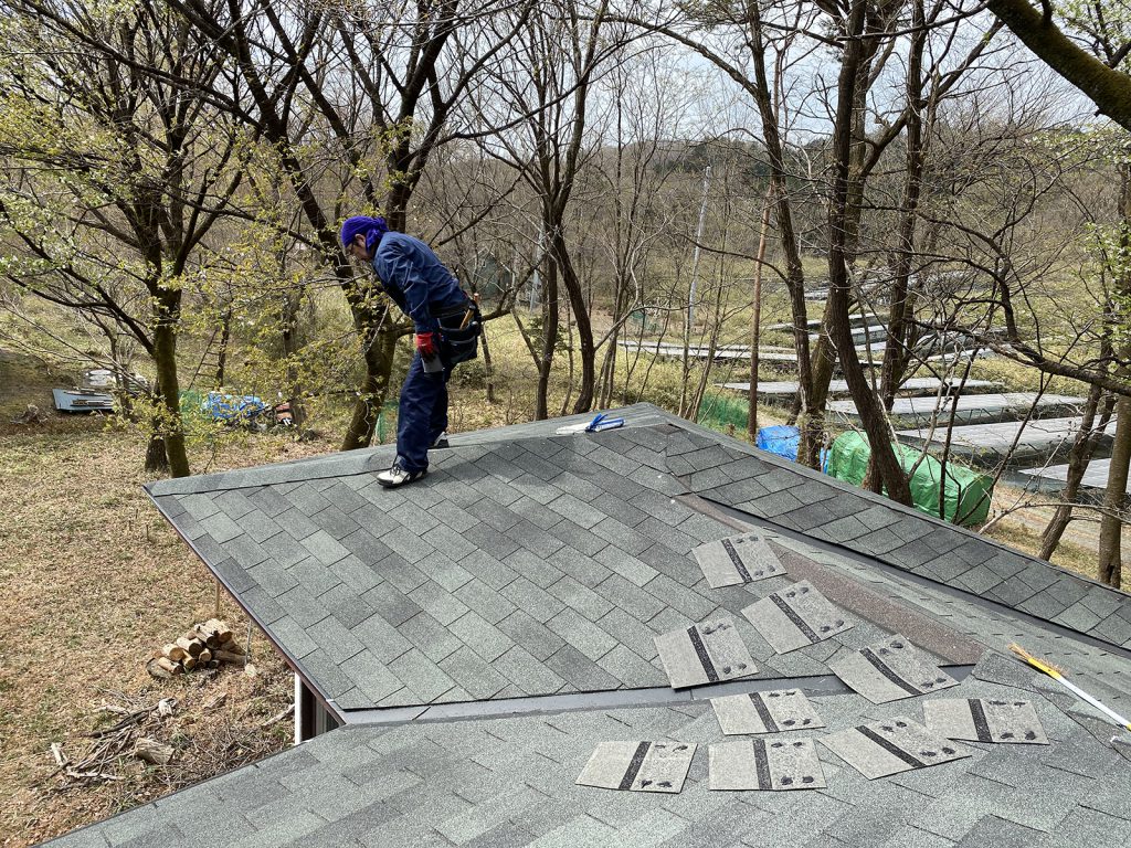 雨は上がってたものの、屋根、乾いてない,,,,,(_ _…)