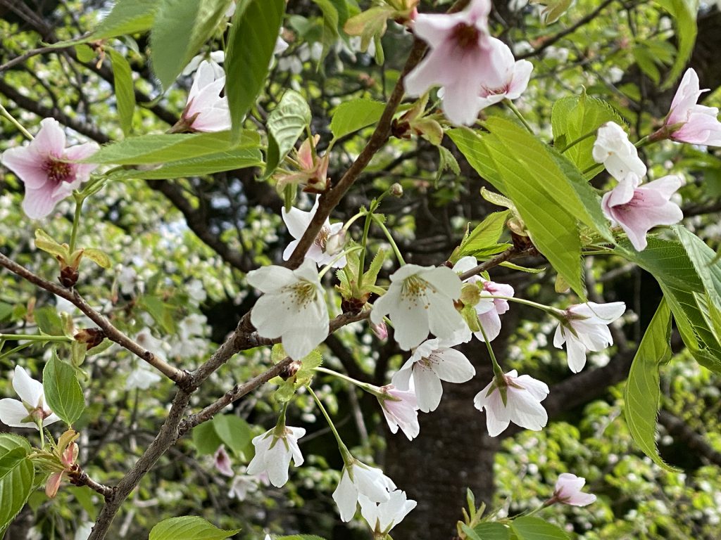 先週の数枚の桜が、一気に咲いてた(・・)早っ」」」。