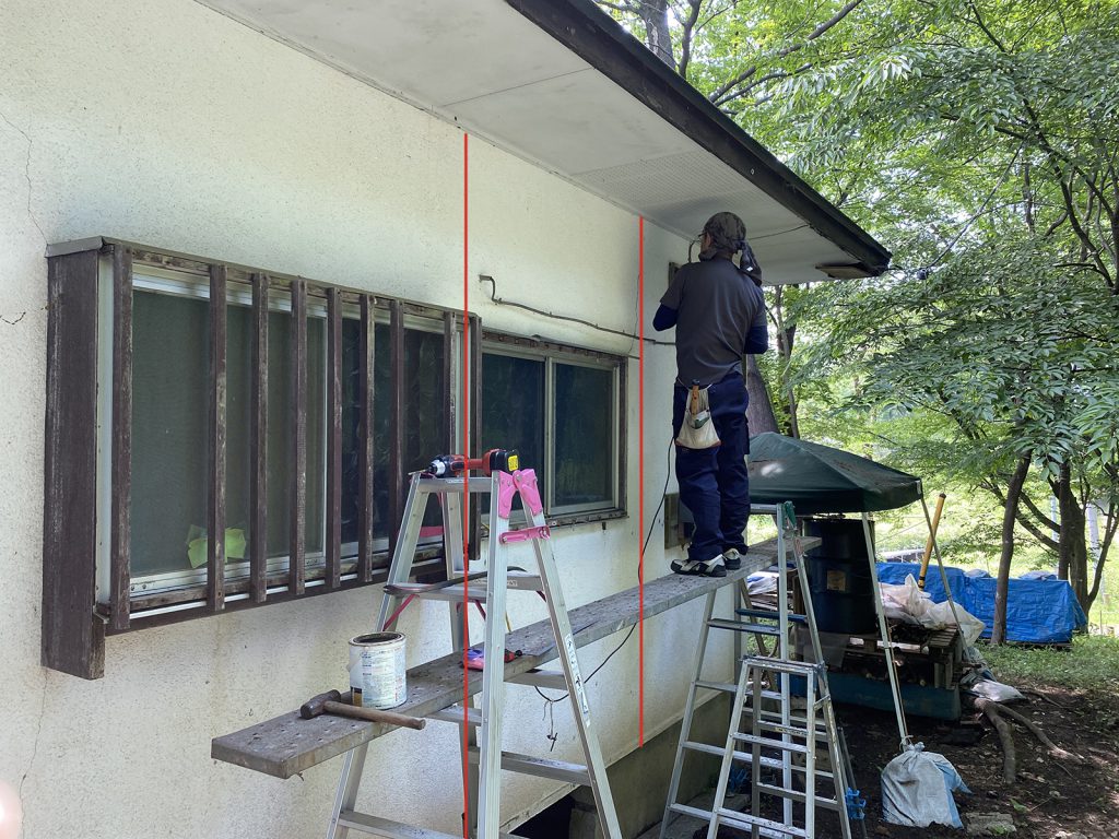 さぁ〜てと、外壁のカットから始めるよぉ〜ヾ( ̄∇ ̄)<赤色のライン>