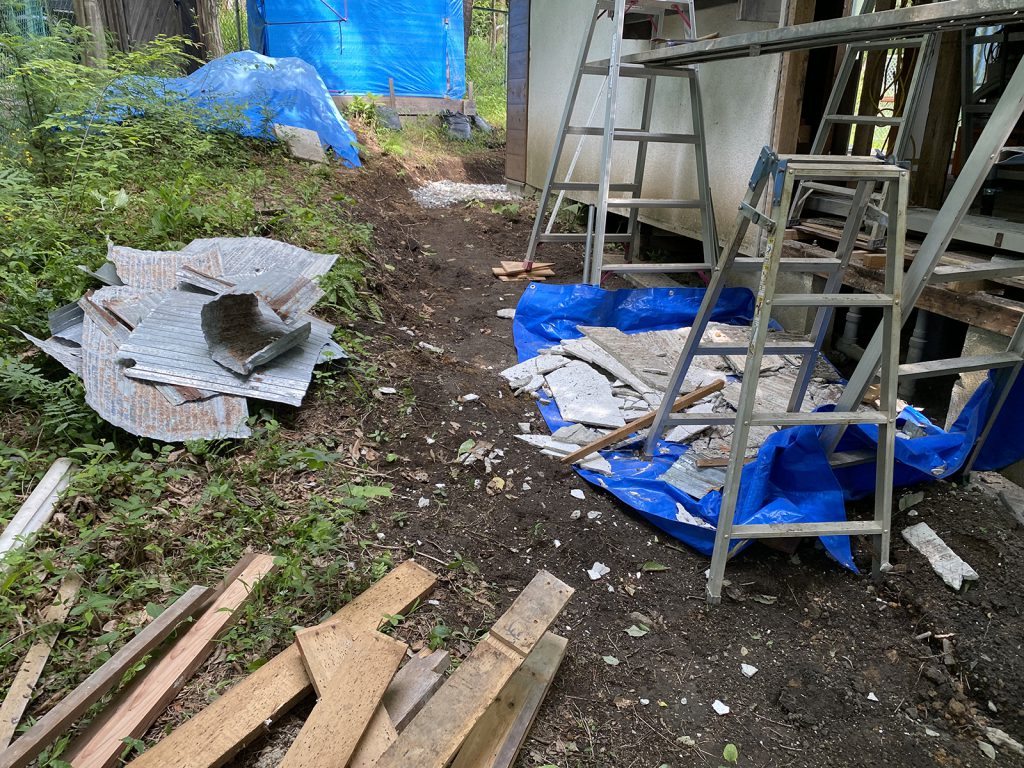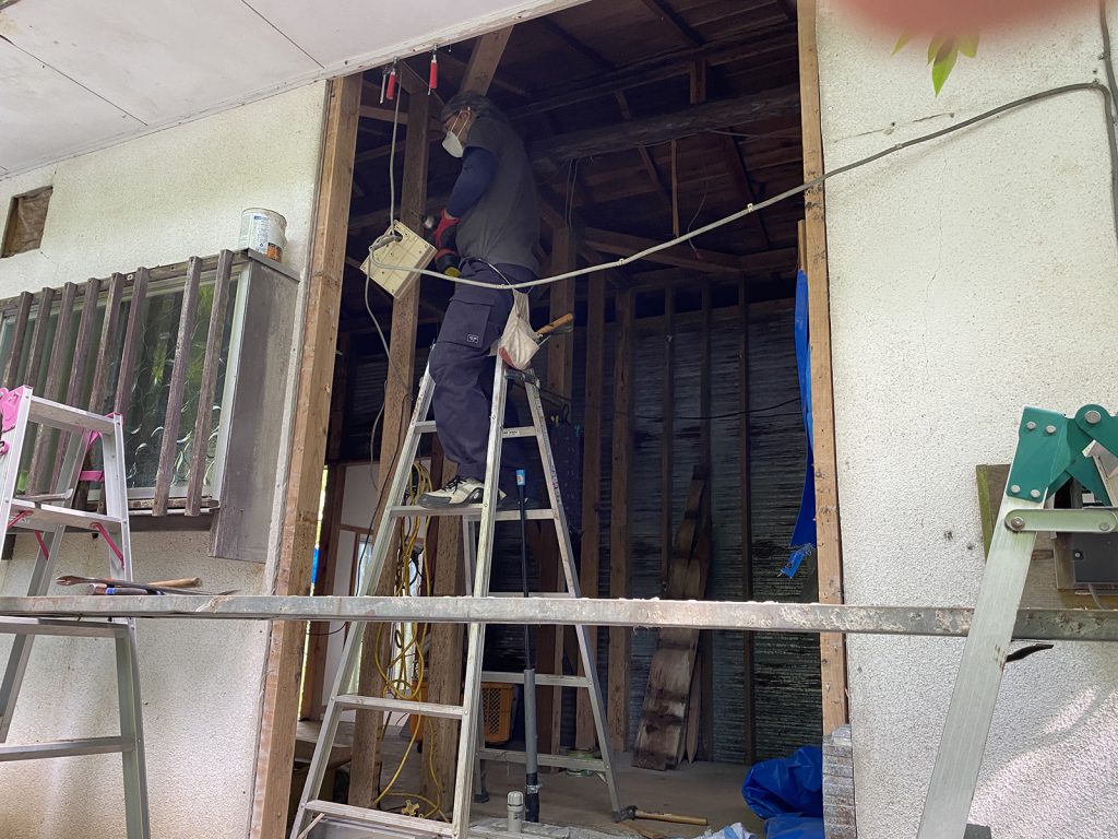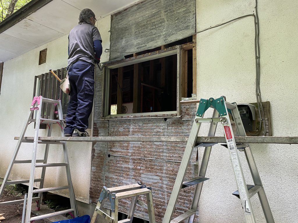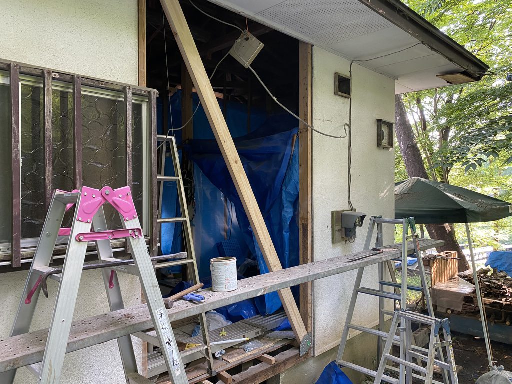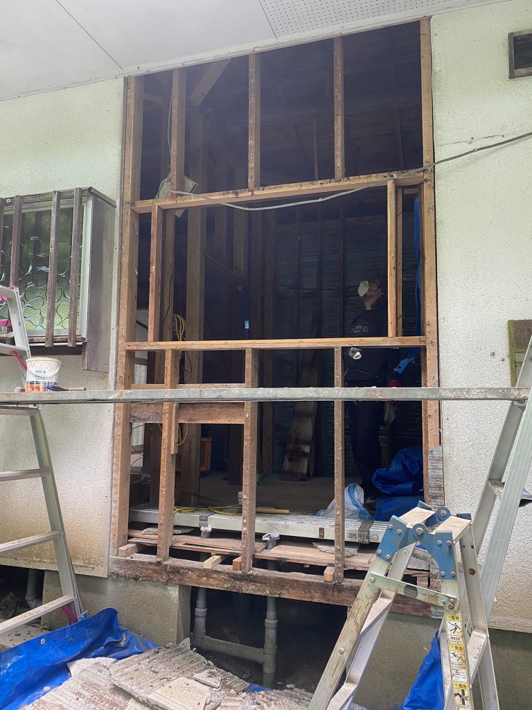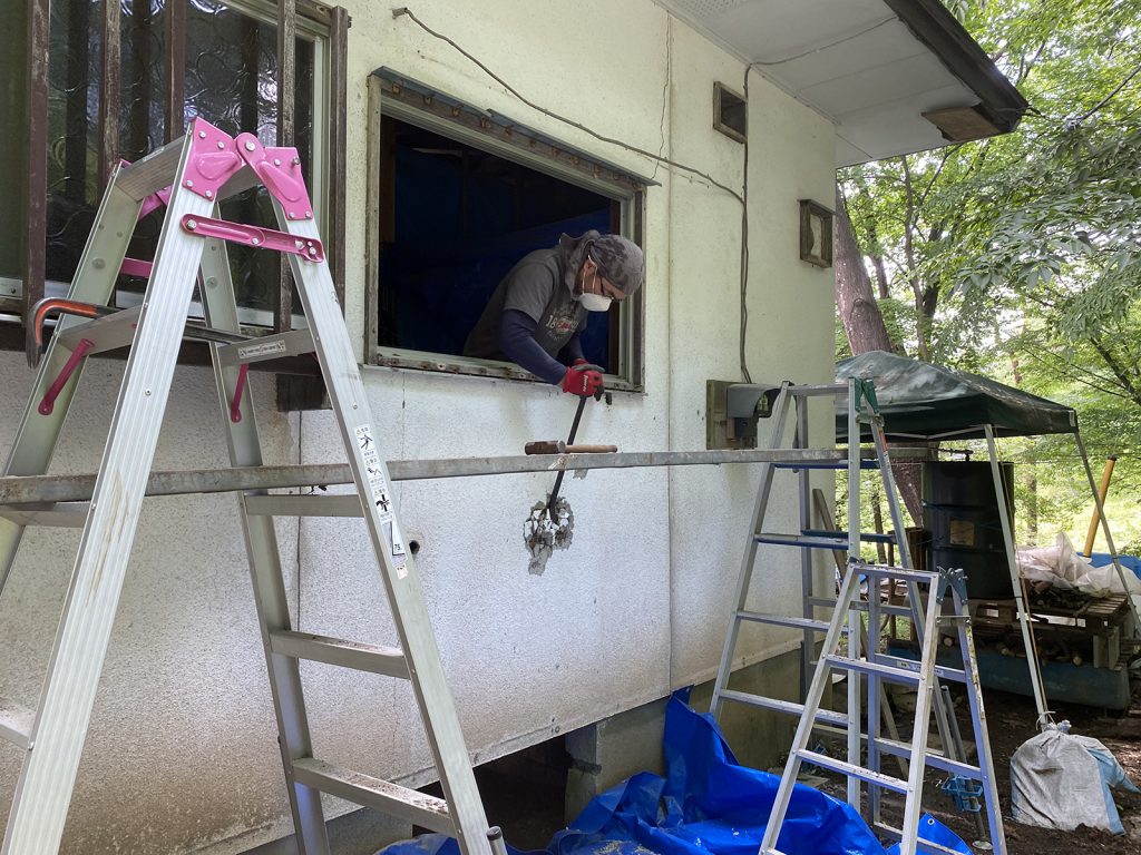 窓を取り外して、モルタルの解体,,,( ̄ー ̄;;;)