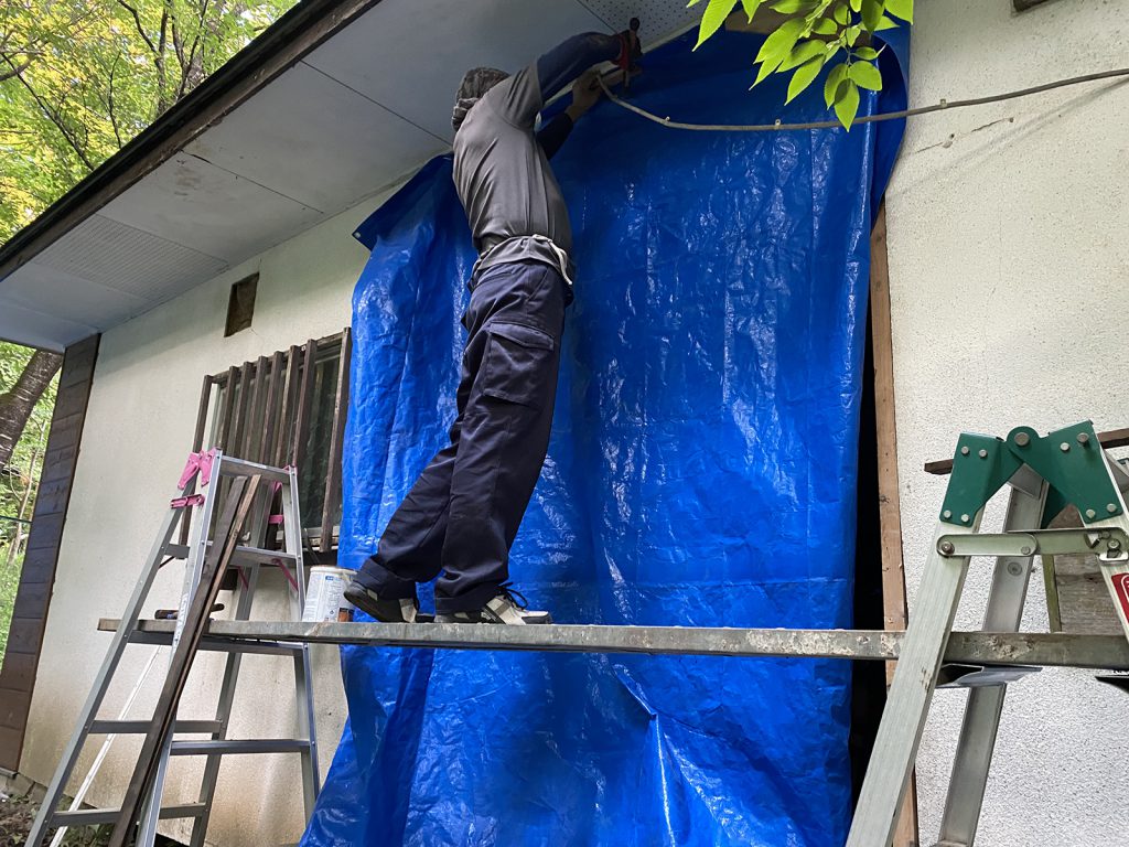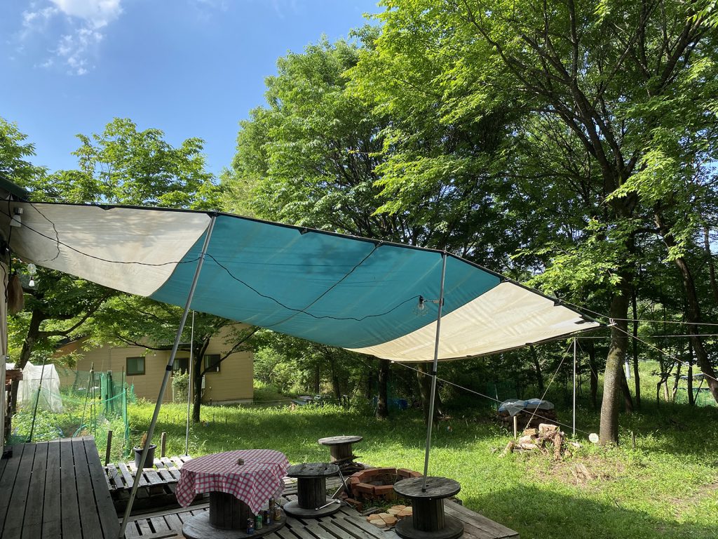 すぐさま、ターフを広げ、、、スモークかかってしまた(-。-;