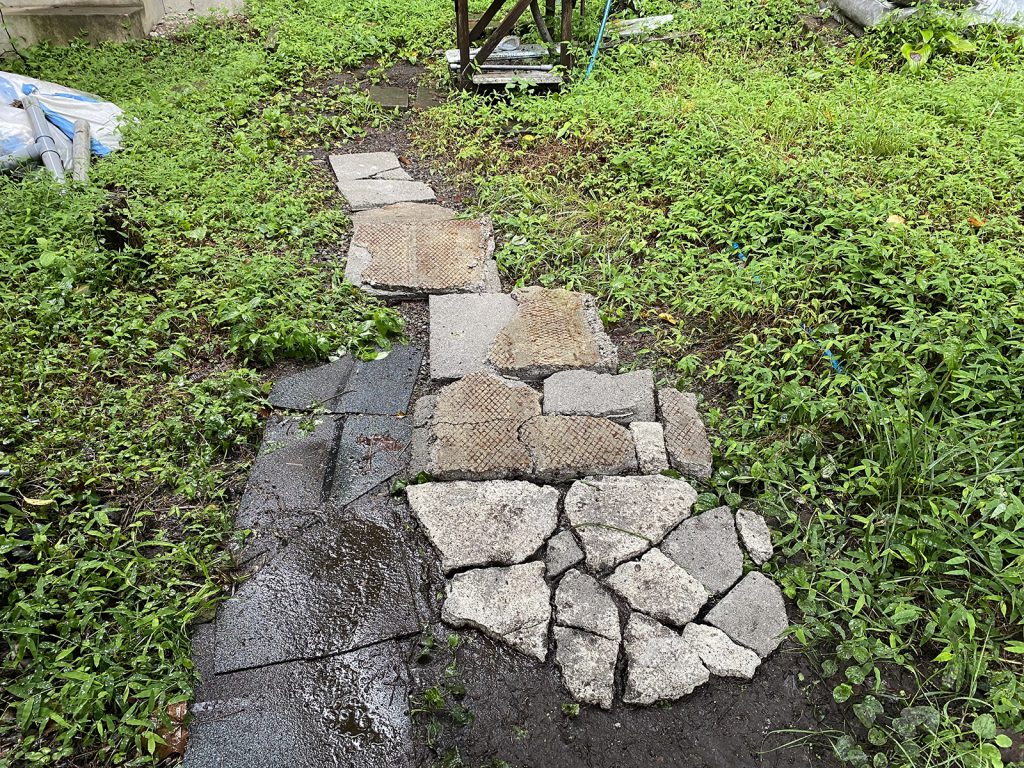 廃材のモルタルを石畳のようにしてみた(^-^;;)