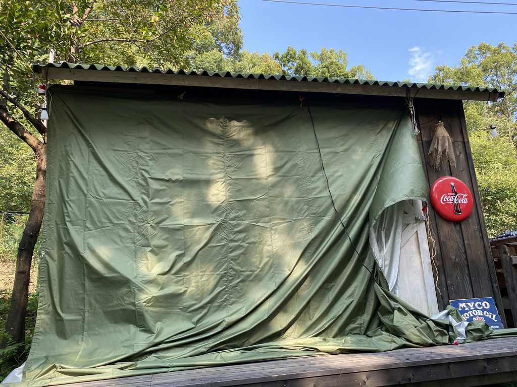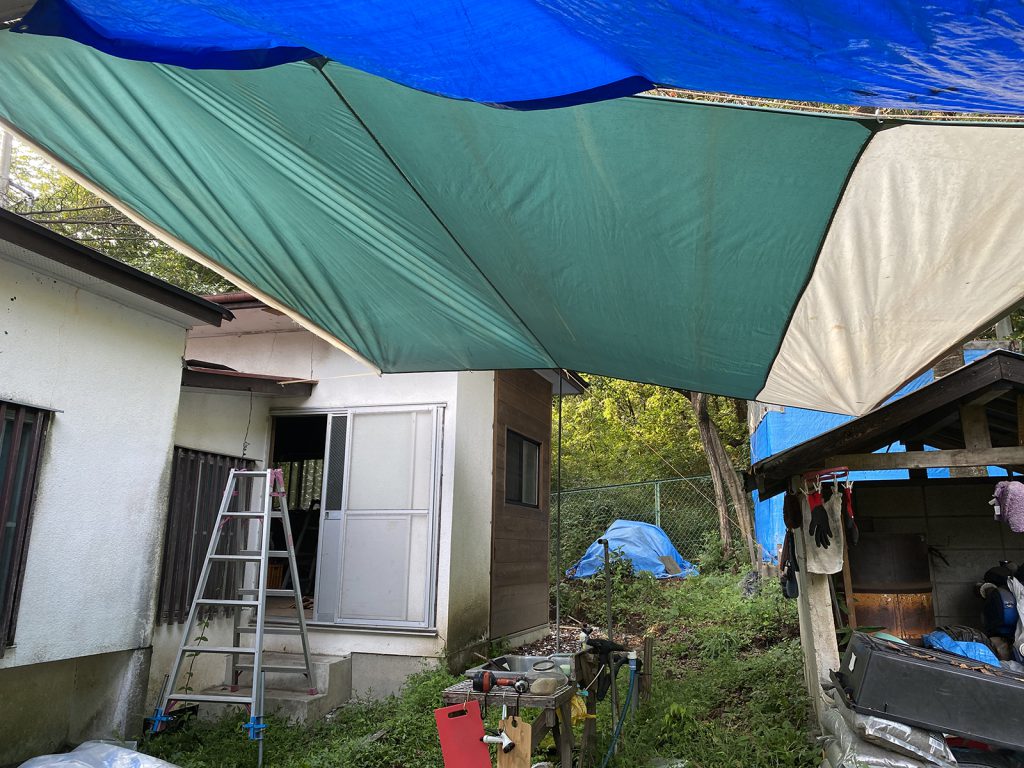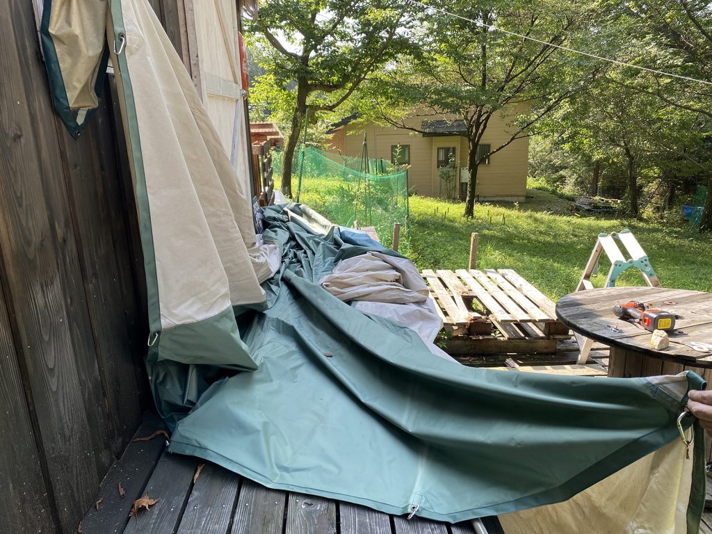 一旦張るも、前のものより幅が50㎝長く、、たるみ過ぎぃ~(>_<)~