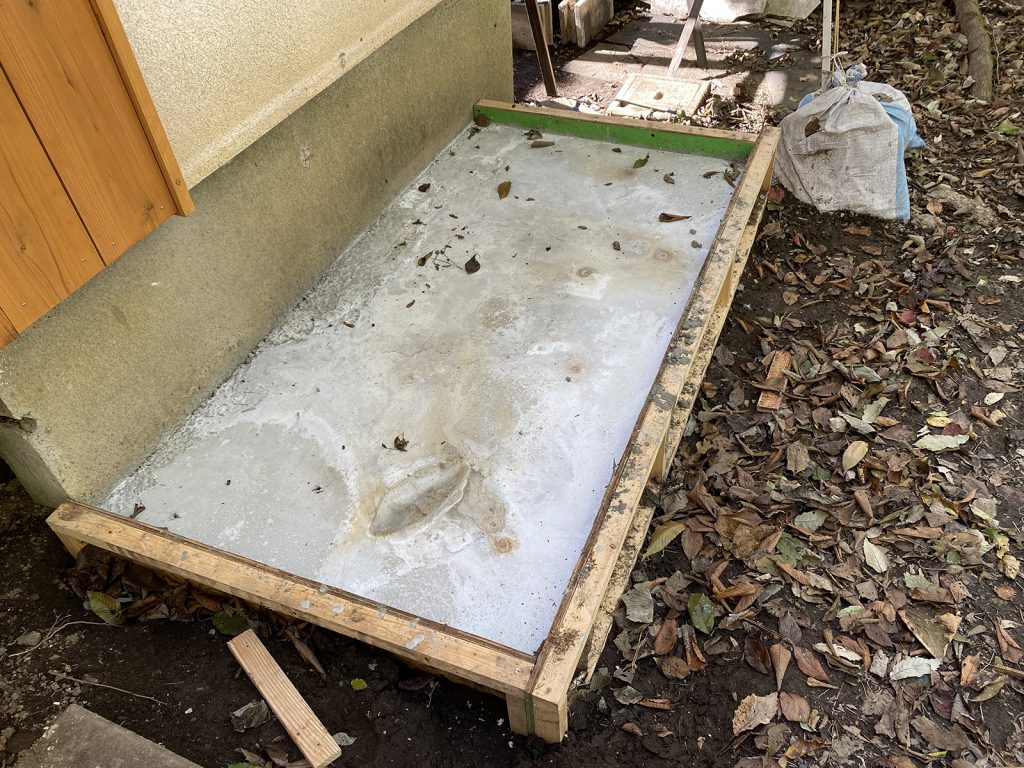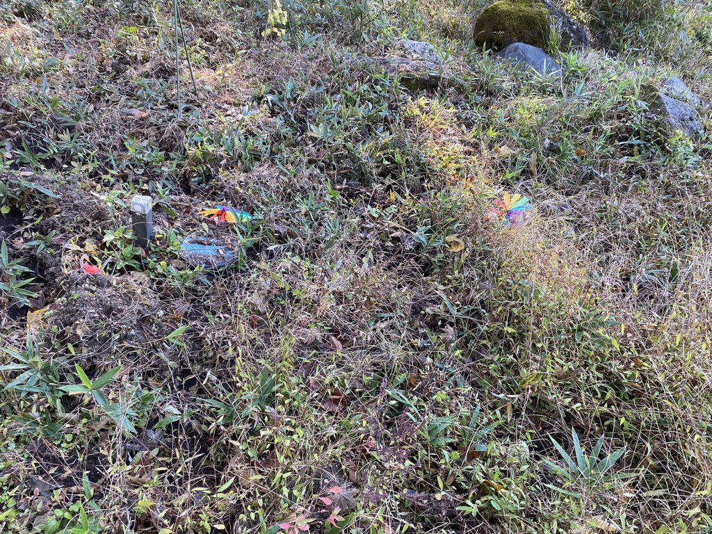 外側だけでも、足で踏みなおし、蛇忌避剤、振り撒いた( ̄‥ ̄)=3