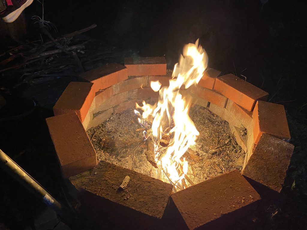 ターフなしでの焚き火、こじんまりと燃してます(^.x.^)