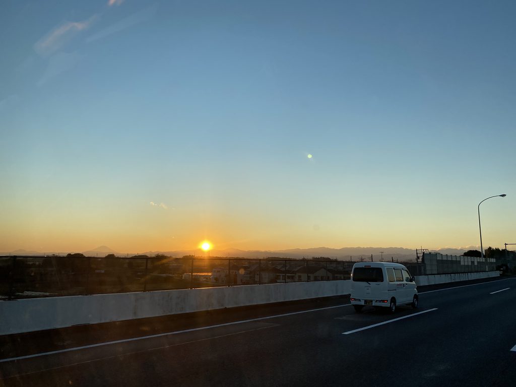 陽が沈むのが早っ__、まだ、関越乗り始めなのに、、、(´-`)