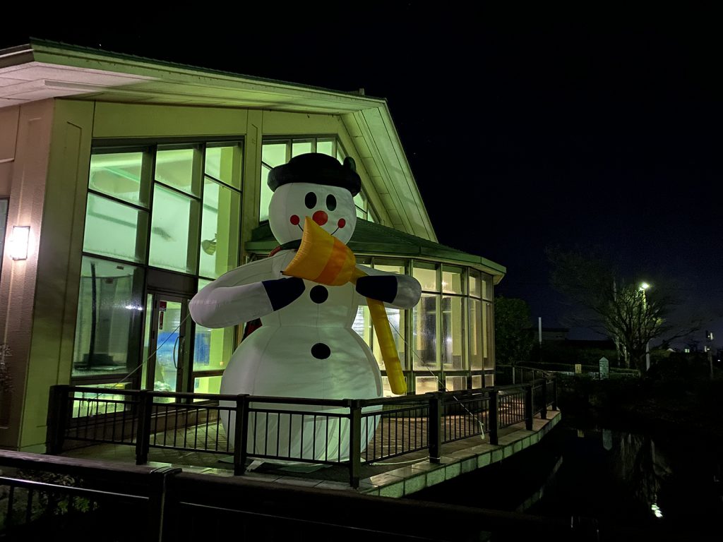 いつもの温泉入口、巨大スノーマン登場してた//。(^0^)/