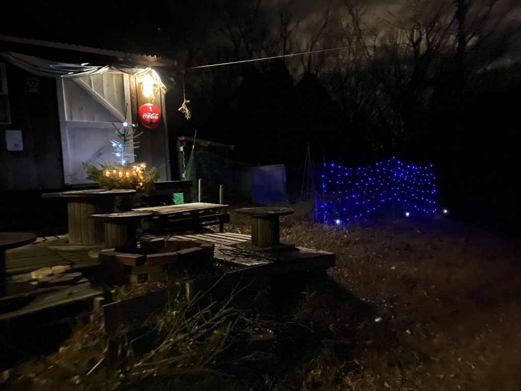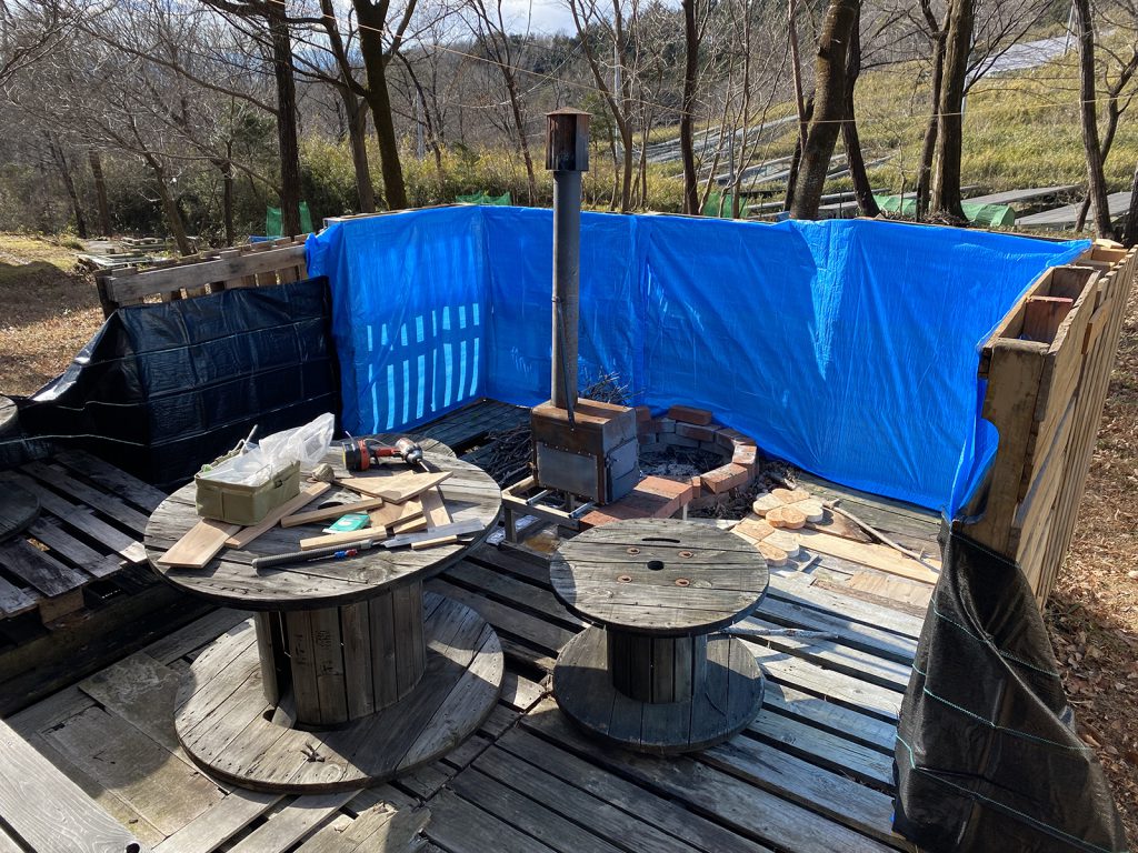 黒のシート足りなく、ブルーシートで,,避難所みたいだけどね..風しのげればOK(^∇^)