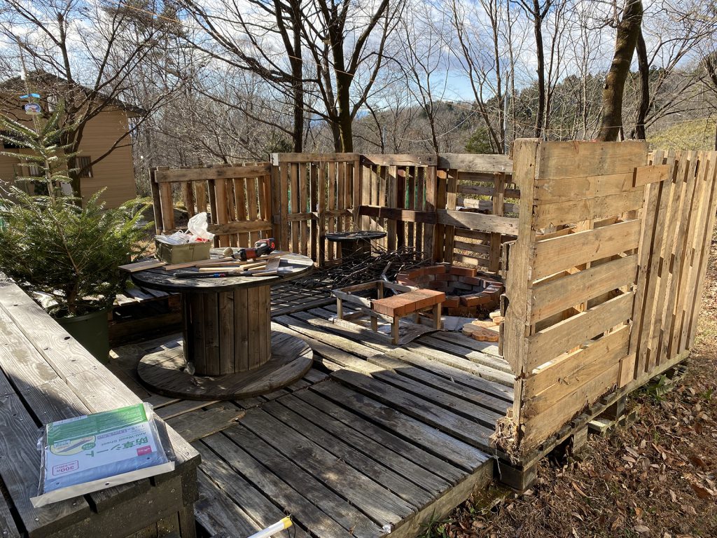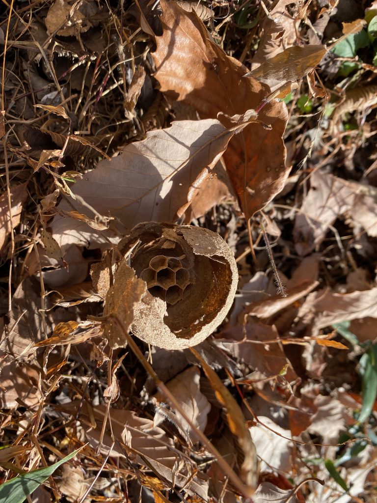 パレットの間から、蜂の巣が(>_< )まぁ、この大きさでよかった<もう殻だけどね>