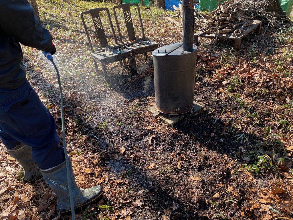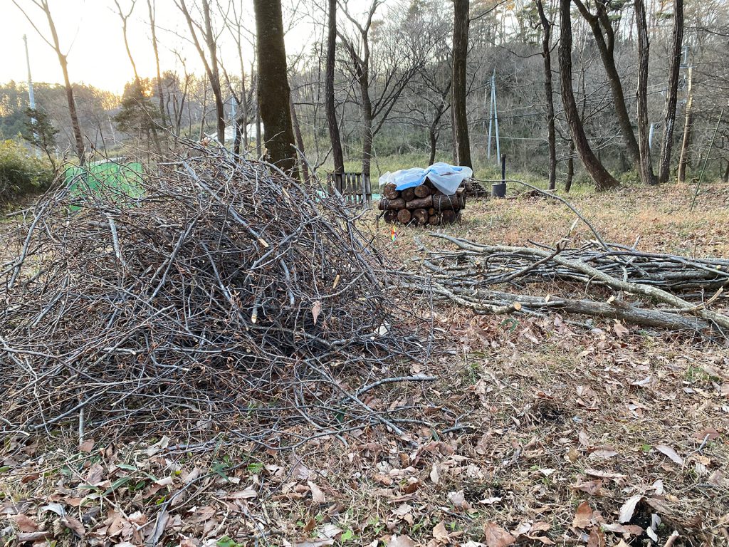 火消しも落ち着いたところで、倒木の木を片すついでに