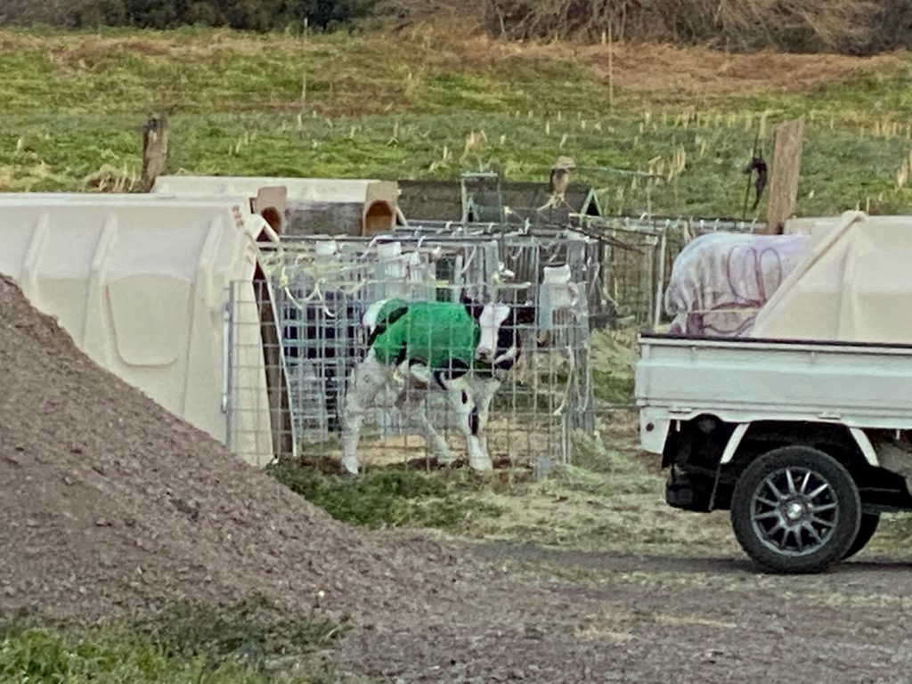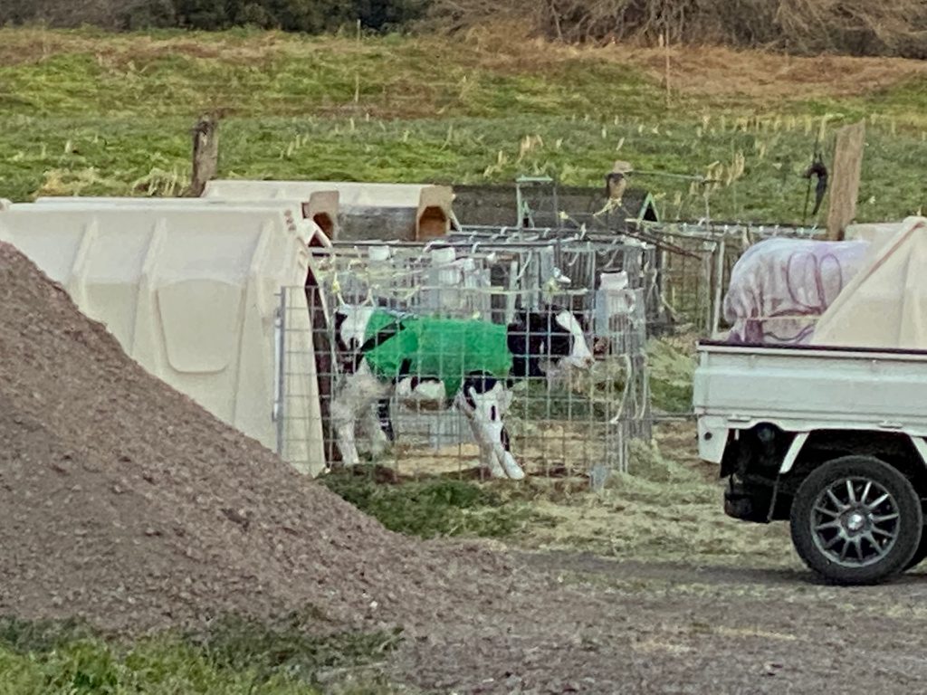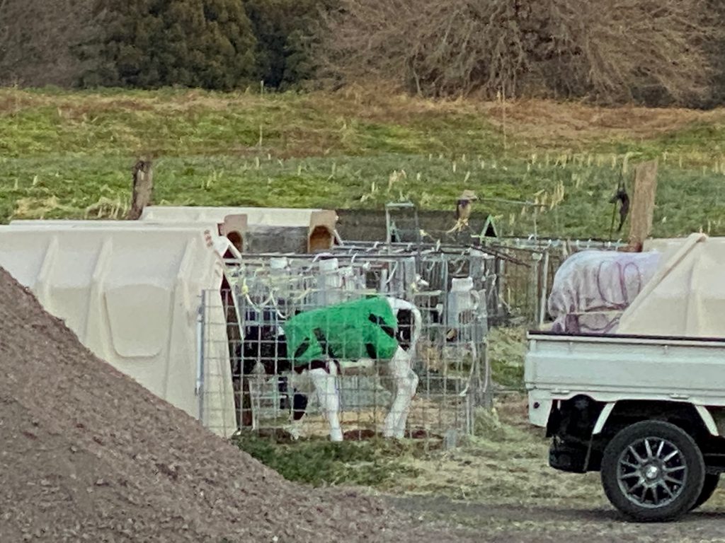 温泉へ行く途中、またまた牛舎の仔牛くん__、
