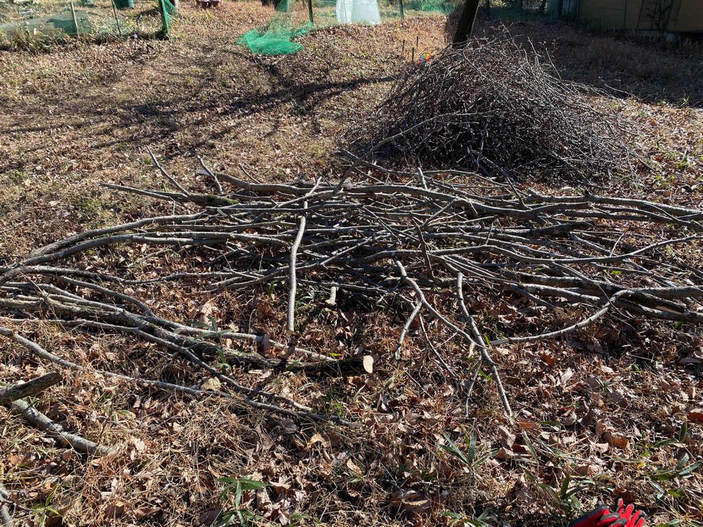 切った枝の山、山___、ε=(‐ω‐;;)フゥ。。片付けは 明日、やろーっと//。
