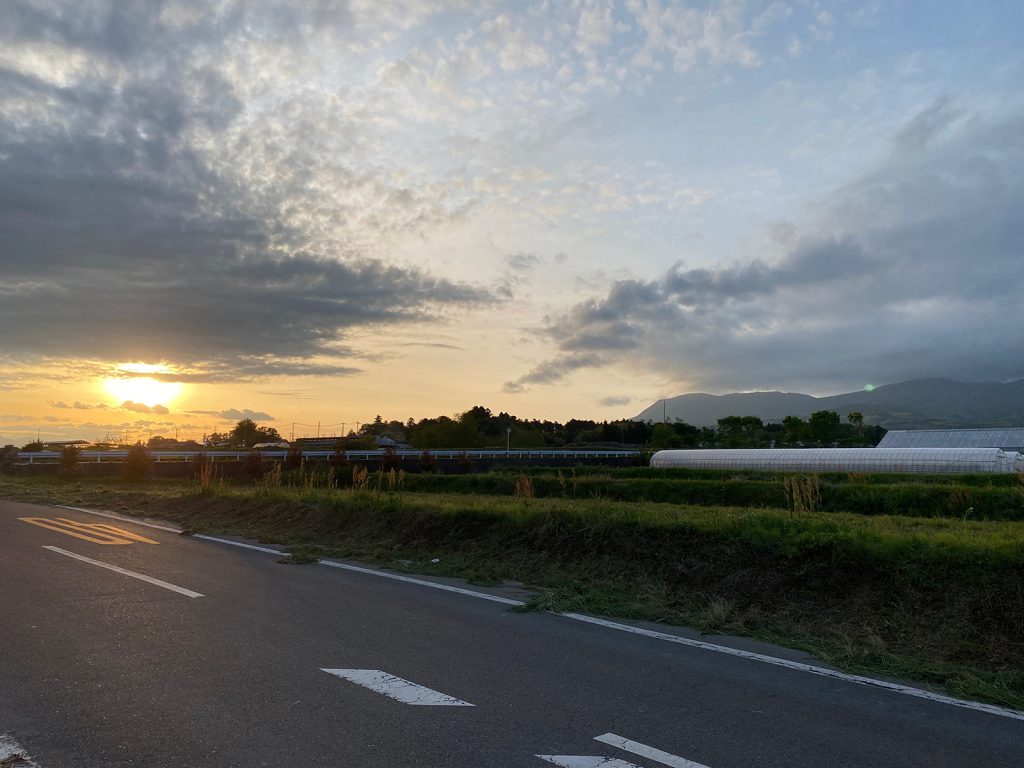 なんとか夕日に間に合うも、うろこ雲__、山にもかかって